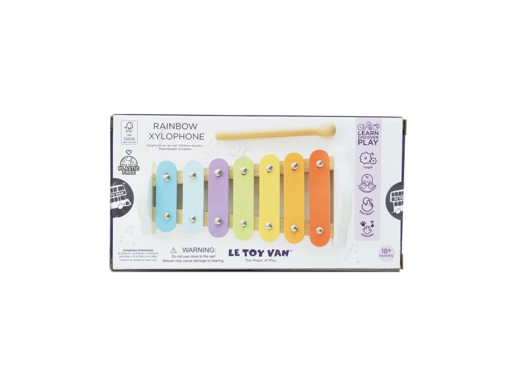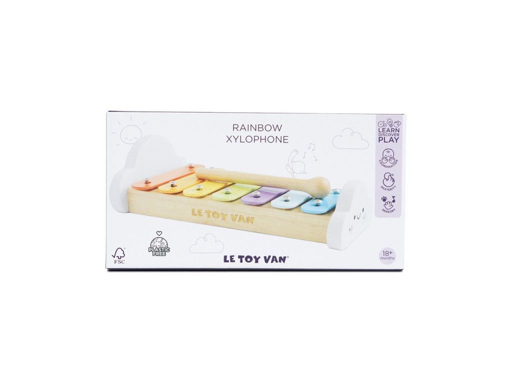 Podpořte zájem o hudbu u svých dětí s touto nádhernou xylofonovou hračkou! Je nejen vstupenkou pro poznávání světa zvuků a melodií od raného věku, ale také pomáhá malým hudebníkům procvičovat obratnost a zlepšovat tak uchopovací dovednosti. Hračka obsahuje i paličku. Je zkrášlena jemnými duhovými barvami a designem s roztomilými mráčky. Xylofon je vyroben ze dřeva s certifikací FSC® (dřevo z lesů obhospodařovaných udržitelným způsobem) a ozdoben barvami na vodní bázi bezpečnými pro děti. Hračky s účelemVšechny hračky firmy Le Toy Van jsou vyrobeny s cílem – aby dlouho vydržely. Designovány s láskou zkušenými řemeslníky za použití etických praktik a udržitelných materiálů, které jsou laskavější k naší planetě. Hlavní vlastnosti: vyrobeno eticky z udržitelného dřevatestováno dle nejpřísnějších standardůmalováno netoxickými barvami na bázi vodyrozvíjí talent dětí, cit pro rytmus a melodii Petilou kolekce: Kolekce pro nemluvňata a batolata od Le Toy Van obsahuje hlavně hmatové hračky, které mají nejmenším posloužit také jako učební prostředky. Kolekce je inspirována přírodou kolem nás a je navržena tak, aby rozvíjela smysly dětí pomocí rozdílných zvuků, textur, tvarů a hmotností. Děti tak od malička zapojí všechny své smysly. V kolekci najdete například skládačky, vkládačky, chodítka, … Značka a certifikát FSC® (Forest Stewardship Council) zaručuje, že dřevo, ze kterého byl produkt vyroben, nebylo vytěženo nelegálně a pochází z lesů obhospodařovaných šetrným či přírodě blízkým způsobem, ve kterém jsou dodržovány přísné environmentální a sociální požadavky. Značka FSC® na výrobku znamená, že svým nákupem pomáháte chránit lesy a podporujete šetrné, odpovědné či přírodě blízké hospodaření, díky kterému jsou naše lesy stabilnější, zdravější, mají přirozenou druhovou skladbu a lépe odolávají negativním následkům klimatických změn.