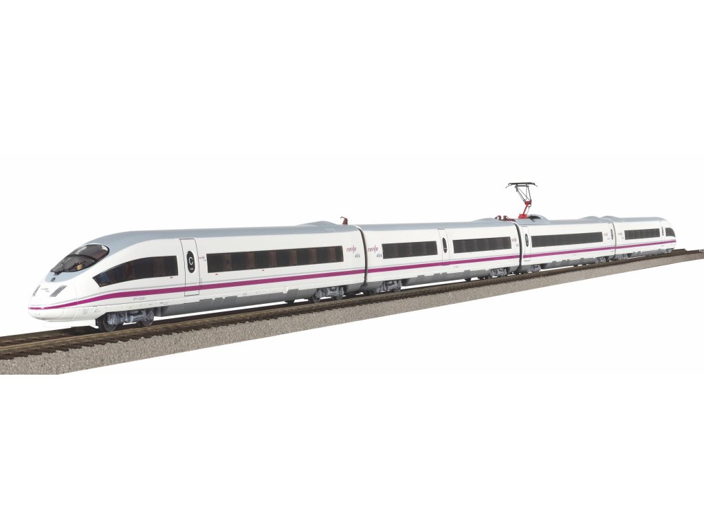 Novinka pro rok 2021. Startovací sada skládající se z čtyřdílné elektrické soupravy španělských vysokorychlostních dálkových drah, prodlouženého oválu a analogového ovládání s napájením. Lokomotivu lze dovybavit zvlášť určeným digitálním dekodérem se zvukovým modulem a reproduktorem. U modelu jsou použita nestandardní krátká spřáhla s konektory. Koleje s podložím zajišťují vyšší odolnost a životnost při opakovaném rozebírání. Nákup sady je vhodné doplnit o příslušný spotřební materiál. Plocha základny: 158x88 cmMinimální konstrukční plocha: 168x98 cm Hlavní vlastnosti: analogové ovládáníčtveřice nápravsvětla s přepínáním barvy dle směru jízdyrozhraní NEM 652šachta dle NEM 362 s kinematikou krátkého spřáhlakoleje s podložím Tato sada obsahuje: čtyřdílná elektrická souprava Velaro E (ICE 3) AVE RENFE (1 ks)kolej oblouková R2 s podložím - 55412 (12 ks)kolej rovná G231 s podložím - 55401 (5 ks)kolej rovná G231 s podložím (přípoj pro napájecí svorku) - 55406 (1 ks)podloží pro napájecí svorku - 55447 (1 ks)napájecí svorka ke kolejím analogová - 55270 (1 ks)základní analogový ovladač s napájecím zdrojem - 55003 (1 ks) Dokumentace: Návod k obsluze a seznam náhradních dílů soupravy č. 97930 (DE, EN, F, ITA, E, CHN, NL, POL, RUS, CZ, HUN)