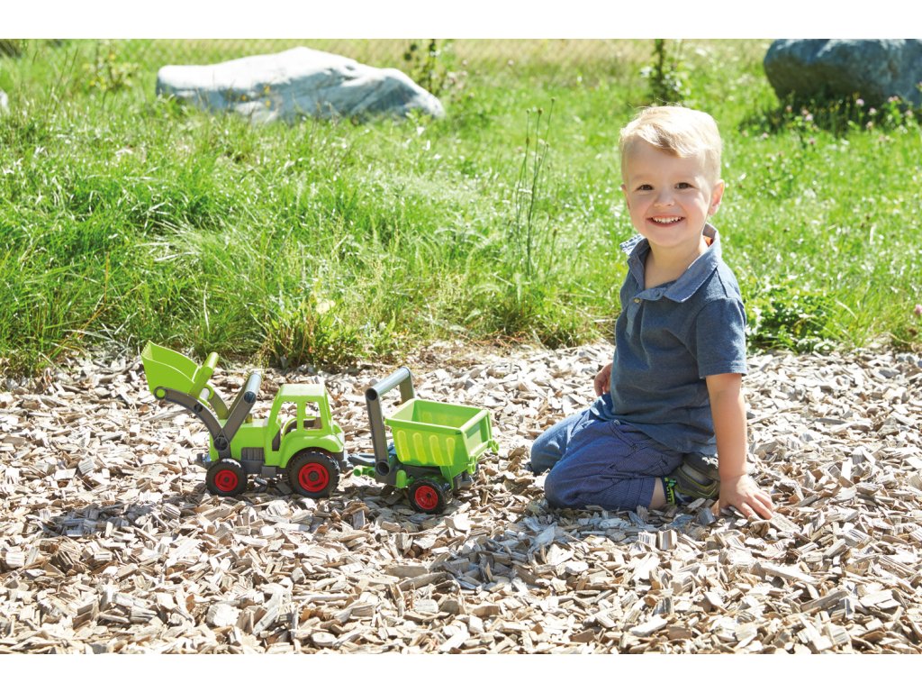 Aktivní traktor vyráběn ekologickou formou výroby za pomocí recyklovaných materiálů a příměsi dřeva. Je plně mechanicky funkční. Disponuje funkční mechanikou a odklopitelnou kabinou pro snadnou manipulaci (řidič není součástí balení). Hlavní vlastnosti: funkční mechanikaodklápěcí kabinavyrobeno z recyklovaného plastu