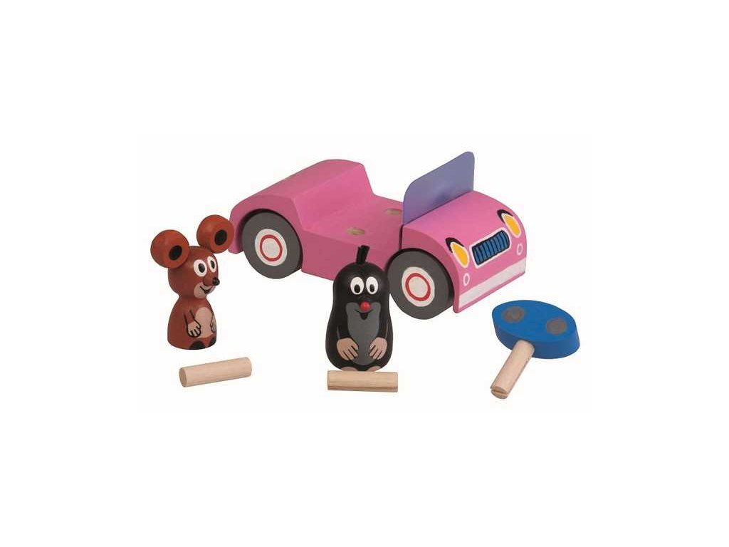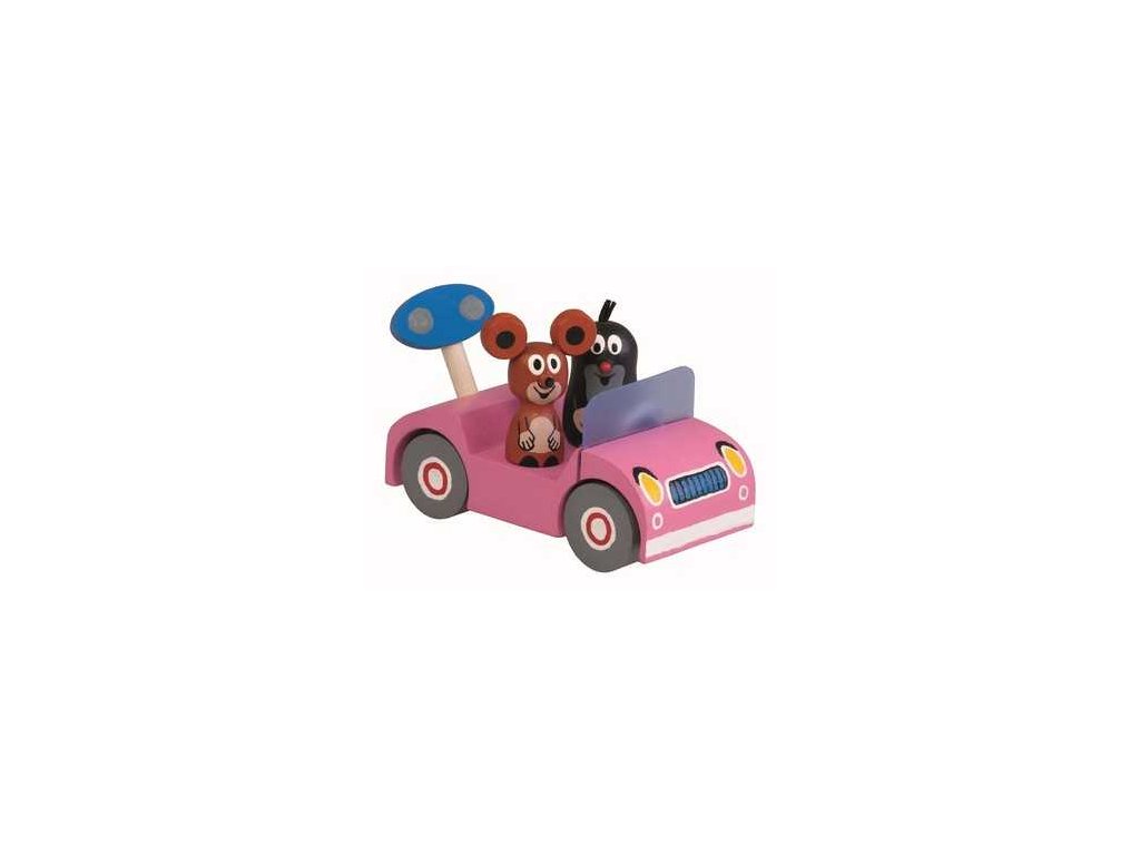 Detoa Dřevěné auto růžové - Krtek na výletě