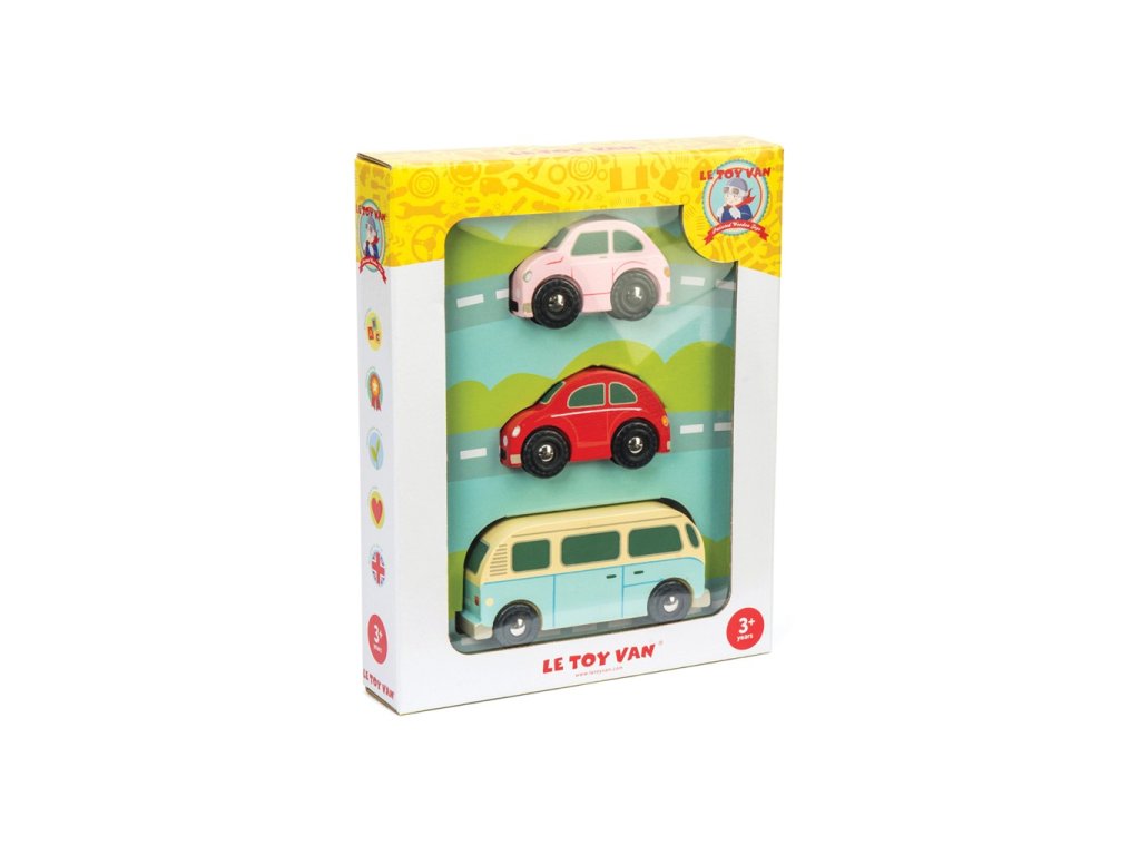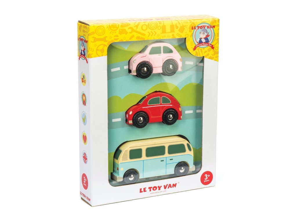 Sada retro autíček pro všechny děti, které si rády hrají. Pěkná tradiční hračka v pastelových i sytých barvách děti inspiruje k představivé hře. Tři autíčka v balení jsou kompatibilní s garážemi, koberci a vláčkodráhami Le Toy Van. Oceněná hračka dětem jistě vykouzlí úsměv na tváři. Hračky s účelemVšechny hračky firmy Le Toy Van jsou vyrobeny s cílem – aby dlouho vydržely. Designovány s láskou zkušenými řemeslníky za použití etických praktik a udržitelných materiálů, které jsou laskavější k naší planetě. Hlavní vlastnosti: vyrobeno eticky z udržitelného dřevatestováno dle nejpřísnějších standardůmalováno netoxickými barvami na bázi vodyinspiruje k představivé hřerozvíjí kognitivní dovednosti Ocenění hračky:Independent Toy Gold Award 2016 Auta & stavby: Stavební a motorická kolekce Le Toy Van, která vyhrála mnoho ocenění. Přesněji prozatím přes 15 ocenění za představivá auta a stavební hračky. Podporují dětskou fantazii, jsou ideální k představivé hře, rozvíjí kreativitu a hravě zlepšují dětskou koordinaci ruka‑oko.