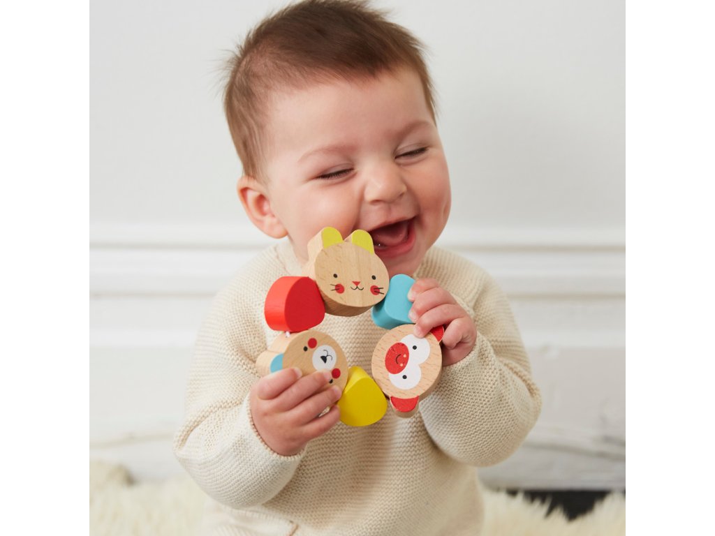 Kousátko, které je ideální pro novorozence, kteří neudrží ruce chvíli v klidu! Obsahuje šest dílků z pevného dřeva, z toho tři vykreslují milé tváře zvířátek, tři mají tvar barevných kapek. Jsou spojeny pevnou plastovou šňůrkou, vydrží i to nejpevnější sevření. Hlavní vlastnosti: perfektní při růstu prvních zoubkůvelikost tak akorát pro dětské rucevyrobeno z FSC bukového dřeva, natištěno barvami na bázi vody, lakováno Značka a certifikát FSC® (Forest Stewardship Council) zaručuje, že dřevo, ze kterého byl produkt vyroben, nebylo vytěženo nelegálně a pochází z lesů obhospodařovaných šetrným či přírodě blízkým způsobem, ve kterém jsou dodržovány přísné environmentální a sociální požadavky. Značka FSC® na výrobku znamená, že svým nákupem pomáháte chránit lesy a podporujete šetrné, odpovědné či přírodě blízké hospodaření, díky kterému jsou naše lesy stabilnější, zdravější, mají přirozenou druhovou skladbu a lépe odolávají negativním následkům klimatických změn.