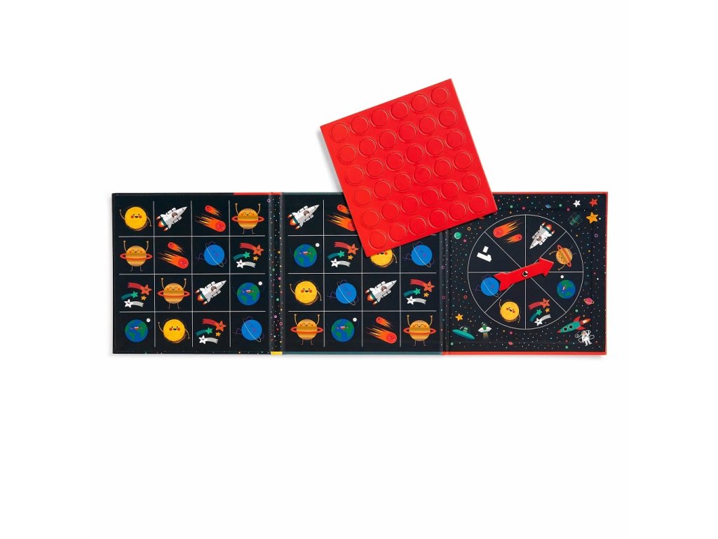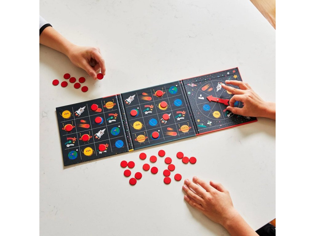 Magnetická desková hra Vesmírné bingo má krásné ilustrace a je vhodná také na cesty. Hra je na třikrát složena, po rozložení objevíte políčka s obrázky, otočnou ručičku a magnetické herní dílky, také návod v angličtině. Hlavní vlastnosti: hra pro 2 hráčeideální pro zábavu na cestáchmagnetická hra