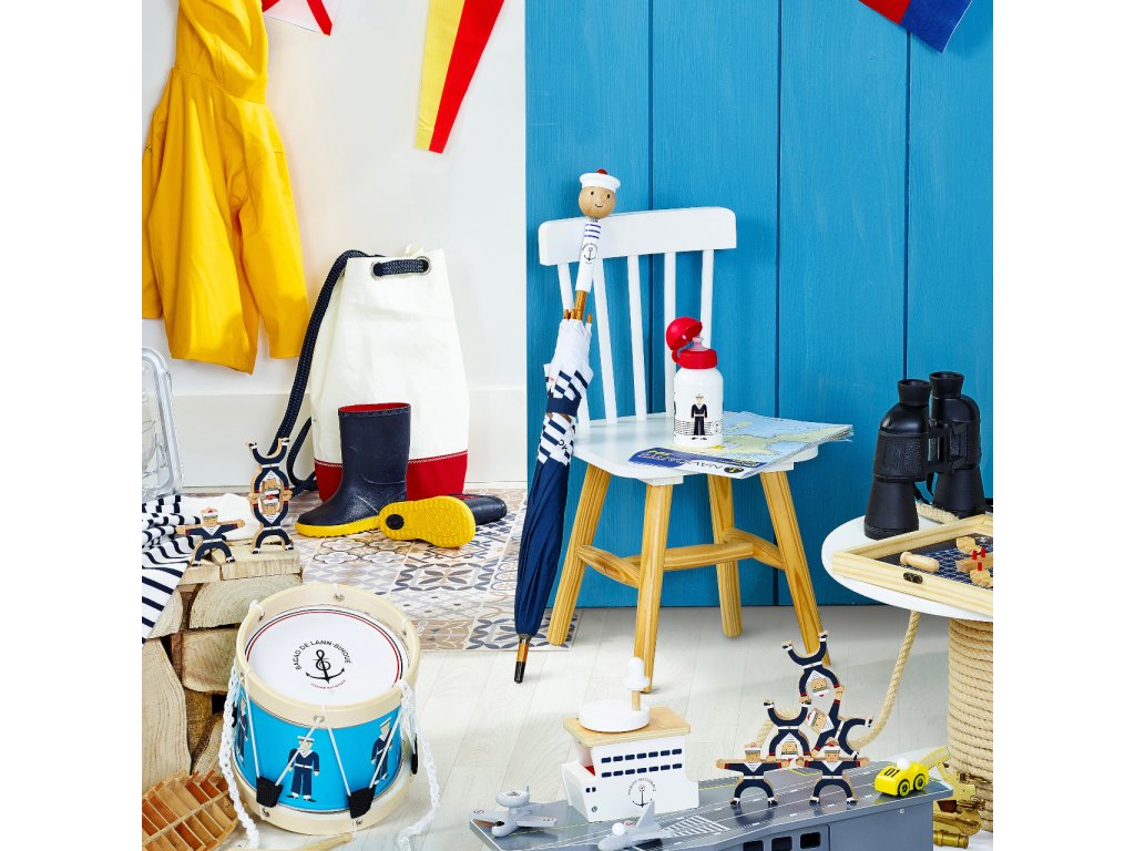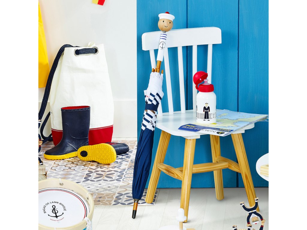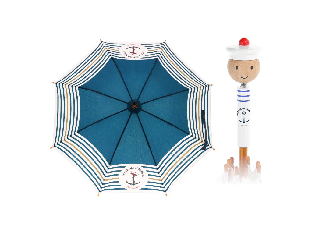 Nenechejte se zaskočit nepřízní počasí a vyrazte ven s unikátním deštníkem! Díky jedinečné barevnosti, námořnickým motivům a originálně zpracované rukojeti s pružně usazenou hlavičkou budete za vzor elegance. Deštník nabízí odolnou a výjimečně lehkou konstrukci kombinující karbon a masivní dřevo. Mechanismus zavírání je opatřen systémem bránícím přiskřípnutí dětských prstíků. Vyrobeno ve Francii. Hlavní vlastnosti: lehká karbonová konstrukceoriginální rukojeť z masivního dřevabezpečný systém zavíránívyrobeno ve Francii Šťastnou plavbu! To je přání námořníkům, kteří vyráží na moře. Toto přeje i Vilac, se svou kolekcí, kterou vyvinuli ve spolupráci s francouzským námořnictvem. Vůni moře vítr dofoukal až do pohoří Jura, výsledek jistě potěší malé námořníky a námořnice, také dospělé, kteří pečují o své vnitřní dítě!