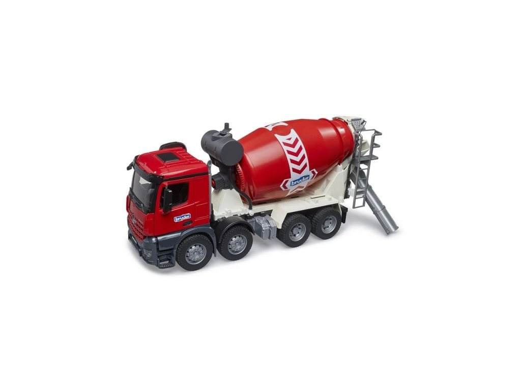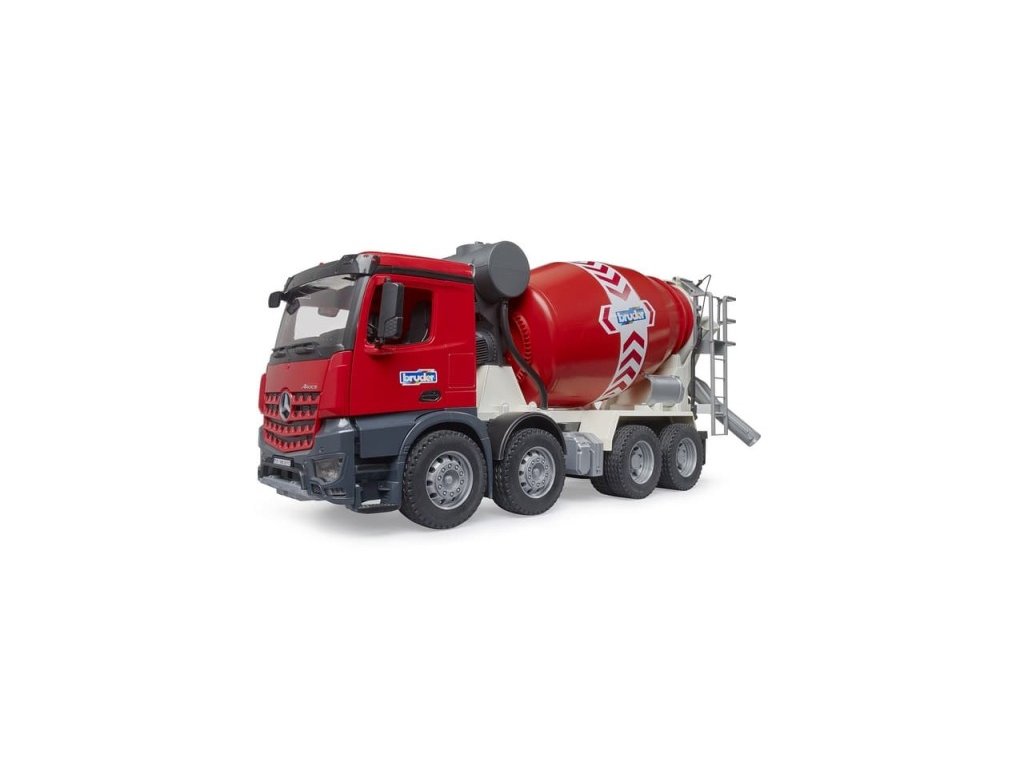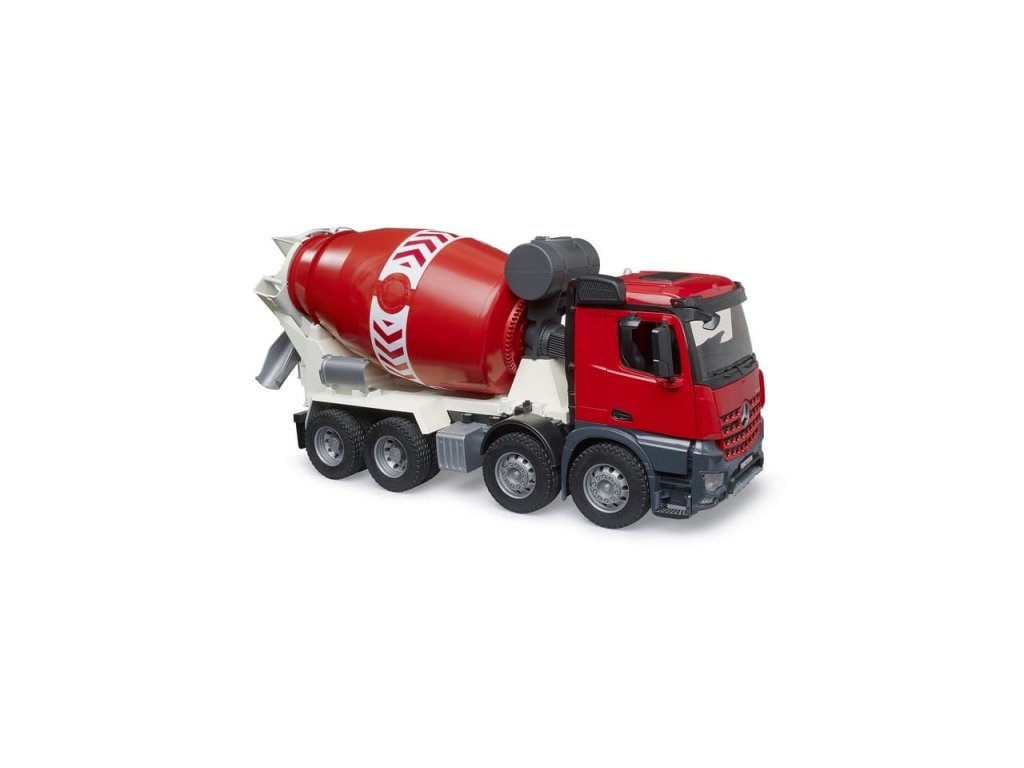 Výkon, odolnost a účinnost jsou často rozhodujícími prvky pracovního dne na silnicích a staveništích. Proto byl nový Mercedes-Benz Arocs vyvinut speciálně pro tyto potřeby. Těmto technickým vlastnostem byl přizpůsoben i design. Například přední část masky chladiče je navržena v typickém vzhledu vozu Arocs, který odráží jeho obrovskou sílu. Díky otevíracím dveřím mohou do vozu nastupovat dělníci v podobě figurek Bruder. Buben míchačky je otočný a lze v něm míchat potřebný materiál. Změnou směru otáčení je možné z bubnu míchaný materiál vypustit. Šnekový dopravník na vnitřní straně bubnu dopravuje náklad do výsypného žlabu v zadní části. Hlavní vlastnosti: otevírací dveřerotační míchací buben sklápěcí zpětná zrcátka kvalitní a detailní zpracování kompatibilní s figurkami Bworldvyrobeno v Německu