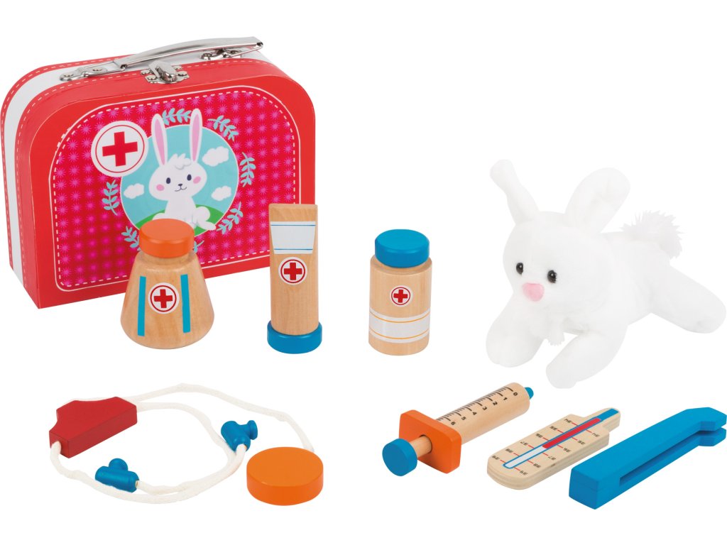 Králíčku, co je Ti? Jsi nemocný? Praktická přenosná lékárnička je plná nejdůležitějších léků a pomáhá zpátky na tlapky všem bolavým bytostem. Injekční stříkačka, teploměr na měření tělesné teploty, pinzeta, stetoskop, mast a tablety jsou jasnou volbou všech malých lékařů i lékařek. Potvrdí Vám, že léčí okamžitě. Hlavní vlastnosti: sada obsahuje 9kspraktický přenosný kufříkplyšový králíčekpodporuje hraní rolí a tvoření příběhů