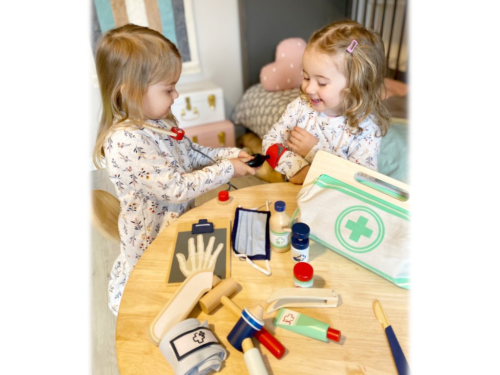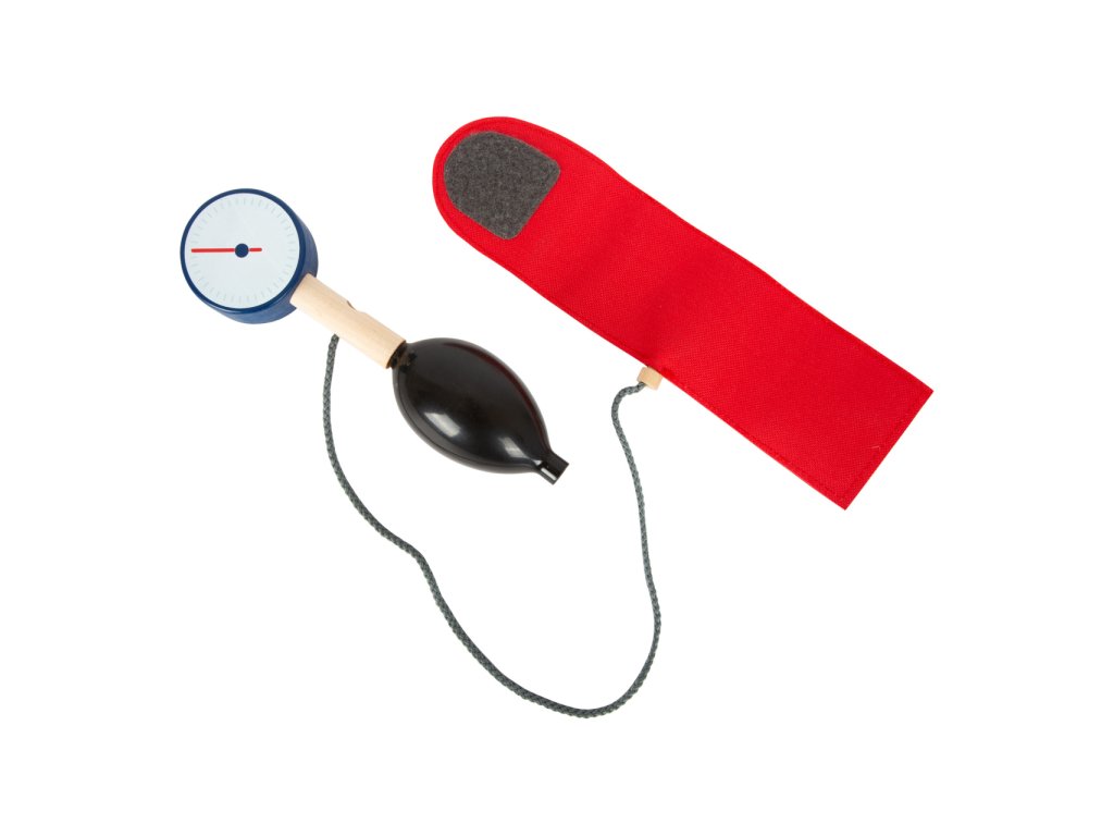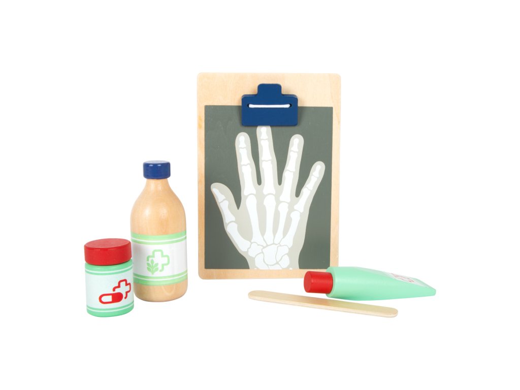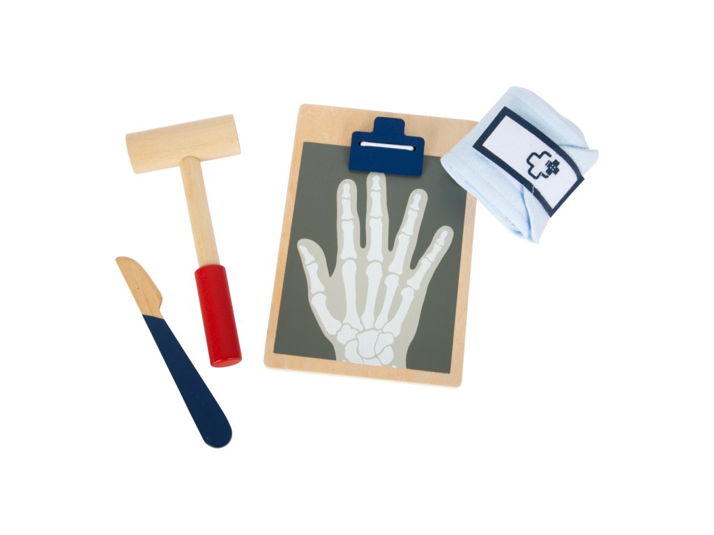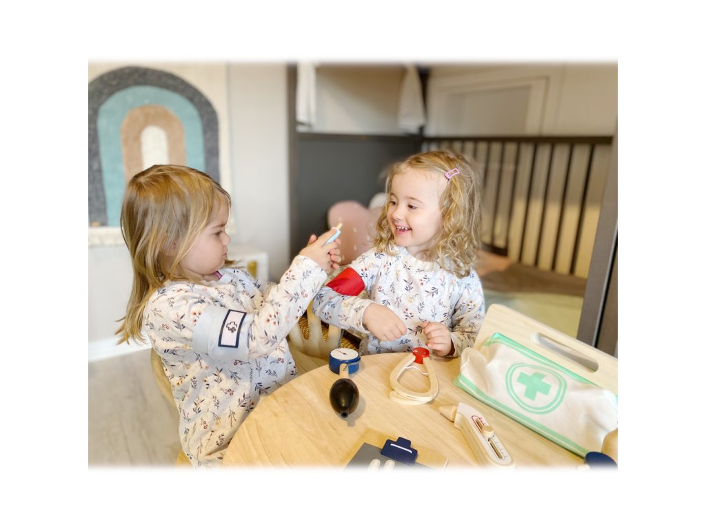 S touto standardní lékařskou brašnou budou mladí nadějní lékaři perfektně vybaveni. Brašna je vyrobená z měkkého textilu, je pěkná na pohled a také velmi funkční. Lze lehce otevřít díky magnetům, je vyrobena ze dřeva. Uvnitř brašny najdete všechno vybavení pro představivé ošetření pacientů: stetoskop, teploměr, stříkačku a mnoho dalšího – vše vyrobeno z pevného dřeva! Nejlepšími doplňky jsou zřejmě tlakoměr s manžetou a balónkem a otoskop s lupou. Tento obsáhlý set lékařských hraček obsahuje mnoho „opravdových“ lékařských nástrojů a přístrojů, s kterými si děti opravdu vyhrají. Ilustrace na lékařských pomůckách dětem poradí rozeznat nástroje a také jim možná zjednoduší jejich použití. Hlavní vlastnosti: Doktorská brašna s jasně viditelným dřevemTlakoměr s manžetou a balónkemTeploměr s nastavitelnou teplotouOtoskop s opravdovou lupouLahvička na léky se šroubovatelným víčkemNáplasti na suchý zipZnovu použitelné a pratelné dětské textilní rouškyDalší vybavení: injekční stříkačka s pohyblivým mechanismem, stetoskop, dezinfekce s pumpičkou, lahvička s léky a lžička, pinzeta, skalpel, reflexní kladivo