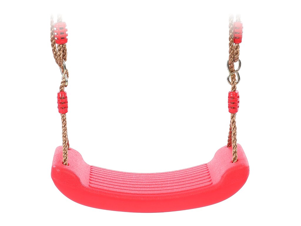 Plastová houpačka červená s výškově nastavitelnými lany.Nezbytný pomocník pro objevitele venkovní zábavy na dětském hřišti. Hlavní vlastnosti: nosnost: 100 kgvýškově nastavitelné lano (max. 180 cm)sedací plocha houpačky 42x16,5x3,5 cm