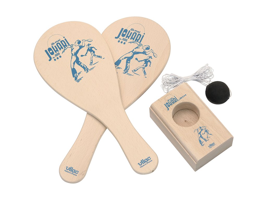 Klasická francouzská hra pro 2 hráče. Dřevěný podstavec s dlouhou elastickou šňůrkou, na jejímž konci je míček. Hráči se střídají v odpalech, snaží se míček udržet ve vzduchu. Pálky jsou 40 cm dlouhé. Hlavní vlastnosti: délka pálky 40 cmpodporuje pohybovou aktivituvyrobeno ve Francii
