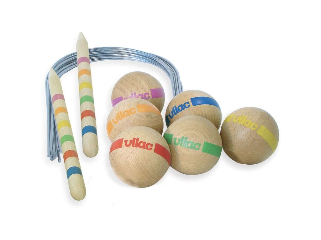 Velký kroket pro 6 hráčů. Obsahuje šest palic, deset branek, šest koulí a dva kolíky. Dřevěné doplňky jsou barevně rozlišené. Vše zabaleno ve velké tašce na zip. Hlavní vlastnosti: vyrobeno ve Francii z bukového dřeva