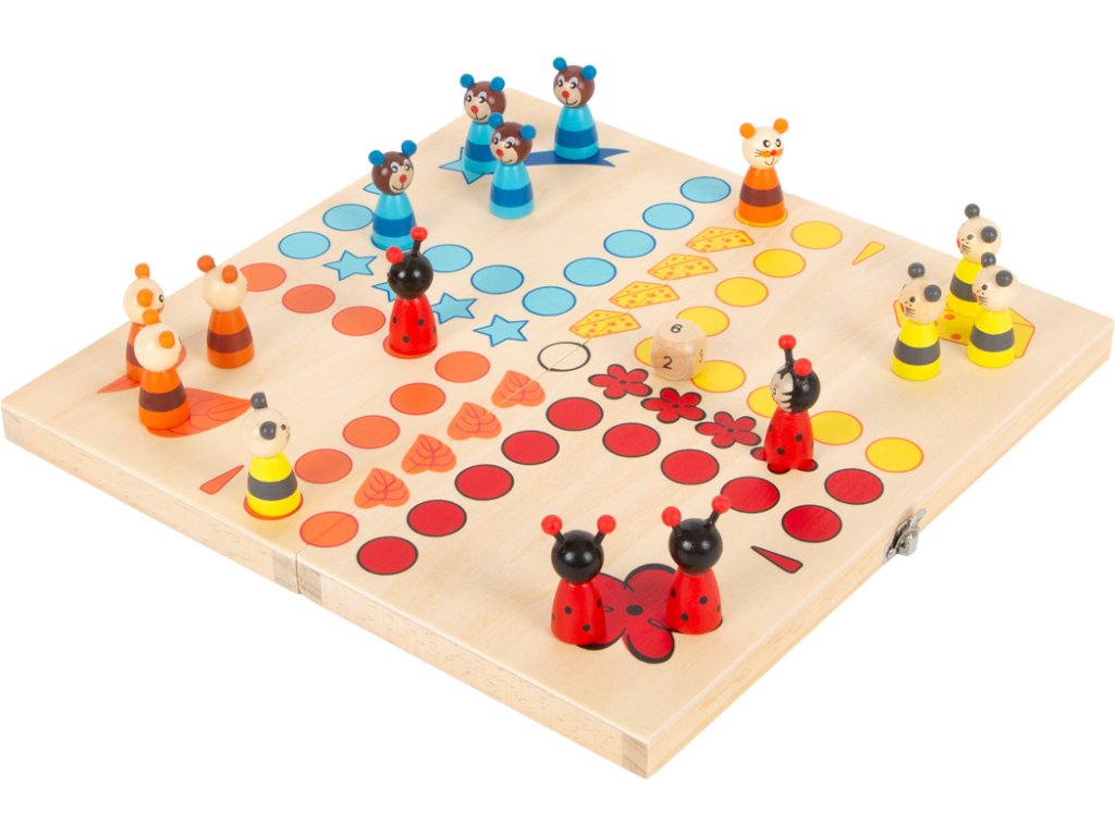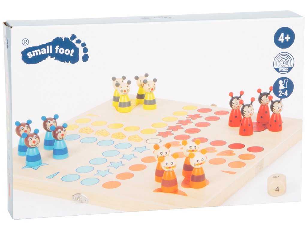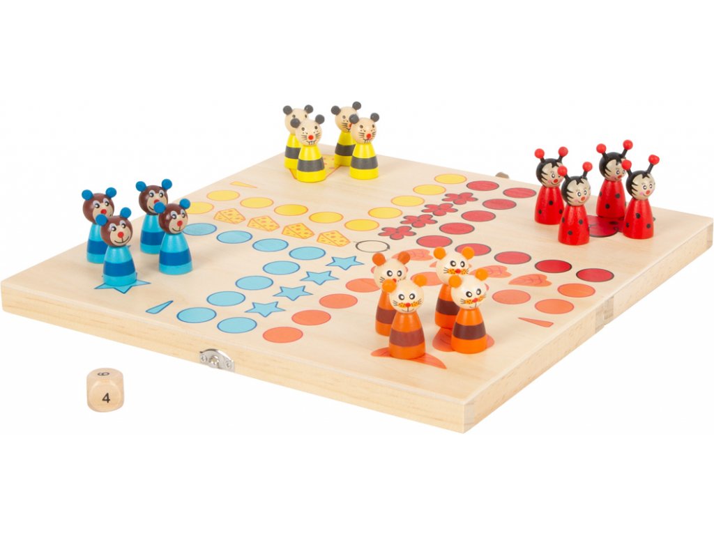 Klasická hra v legrační designu, kdy hráči hrají se zvířecími postavičkami. Hra je pro 1-4 hráče. Umístěním herních dílků se trénuje jemná dětská motorika. Roztomilé, pestrobarevné herní figurky mají design vhodný pro děti. Hru lze prakticky a bezpečně uložit do dřevěné krabice se západkou, takže je ideální, když jste na cestách nebo na výletech. Balení obsahuje 16 figurek a 1 kostku. Hlavní vlastnosti: klasická společenská hra až pro čtyři hráčerozvíjí motoriku a logické myšlenívyrobeno ze dřevapraktické uzavíratelné balení