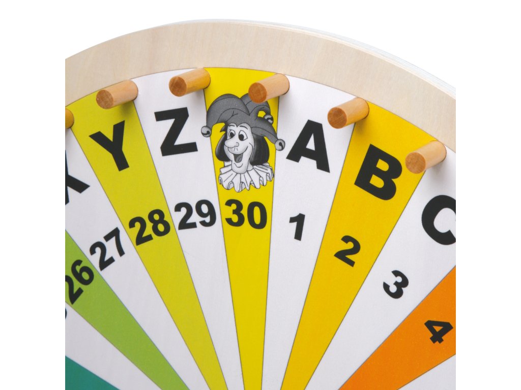Toto kolo štěstí je skvělým doplňkem pro hry jako např. loterie, slovní hry nebo vymyšlené hry s figurkami od 1 do 30, písmeny od A do Z a také 4 žolíky. Hlavní vlastnosti: vhodné pro figurky s čísly od 1-30, písmena od A do Z, také 4 žolíky masivní dřevěný stojanzaručená zábava při hraní