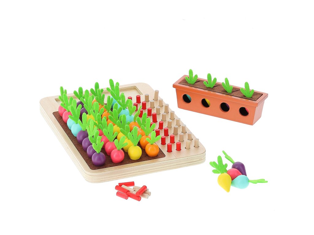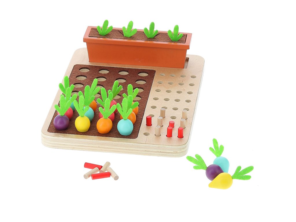 Co to roste v zeleninové zahrádce? Růžová a modrá mrkev? Zasaďte do květináče 4 mrkve, protihráč musí uhodnout jejich pozice! Dokáže to, než dojde na poslední řádek záhonku? Zábavná a barevná hra pro lidi všeho věku! Hlavní vlastnosti: atraktivní barevné provedeníhra pro všechny věkové kategoriepomáhá rozvíjet logické myšlení a soustředěnost dětí