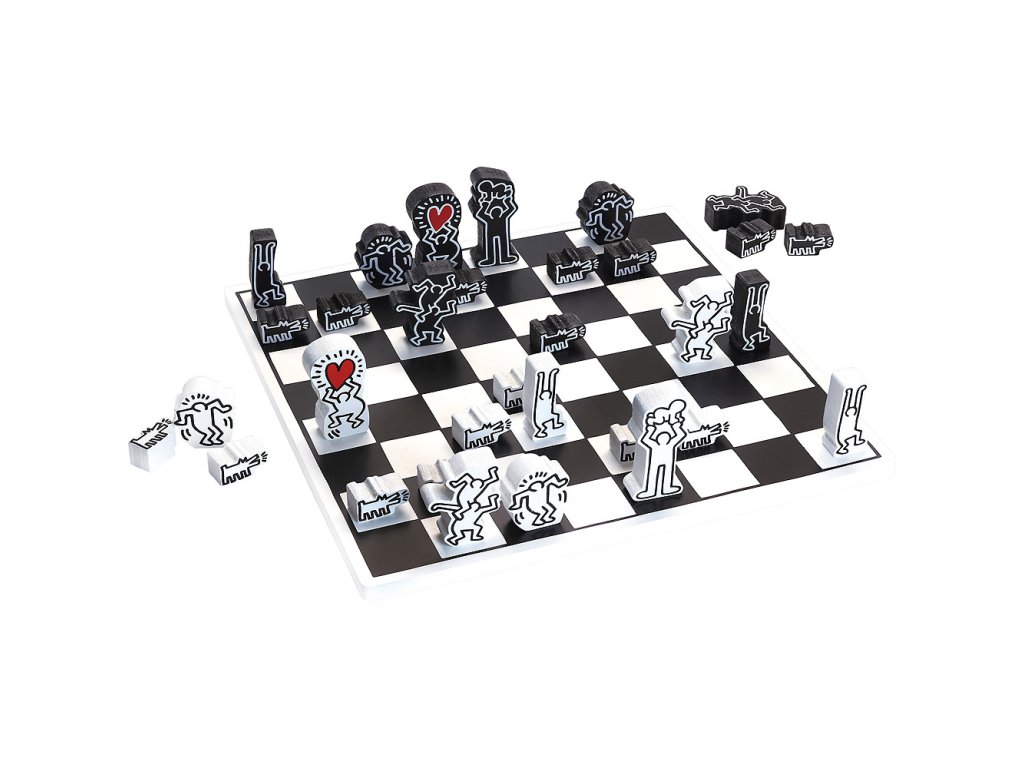 Extravagantně ilustrované dřevěné šachy, které si jistě najdou místo na poličce, jako dekorace. Produkt, který prostě musí mít každý fanoušek dizajnu a Keitha Haringa. Hlavní vlastnosti: tradiční hra v moderním kabátědesign Keith Haring Keith Haring (1958–1990) byl umělec a aktivista, který často používal své umění k vyjádření názoru na různé sociální problémy. Byl jedním z nejznámějších mladých umělců mezi filmaři, umělci a hudebníky, jejichž tvorba reagovala na městskou pouliční kulturu osmdesátých let. V roce 1989 mu byl diagnostikován AIDS, Keith Haring tak založil nadaci za účelem poskytnutí financování a využití svého umění organizacím bojujícím proti AIDS na celém světě, aby zajistil, že jeho filantropický odkaz bude pokračovat neomezeně. Posláním Nadace Keitha Haringa je udržovat, rozšiřovat a chránit dědictví Haringova umění a jeho ideálů. Nadace podporuje organizace, které pomáhají znevýhodněným dětem, stejně jako ty, které se zabývají vzděláváním, výzkumem a péčí týkající se HIV a AIDS. Haring Foundation zastupuje Arestar, LLC, mezinárodní společnost pro licencování a poradenství značek, která se specializuje na umění, módu a designové značky.