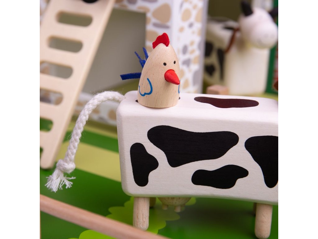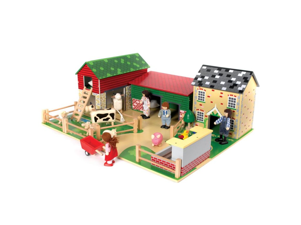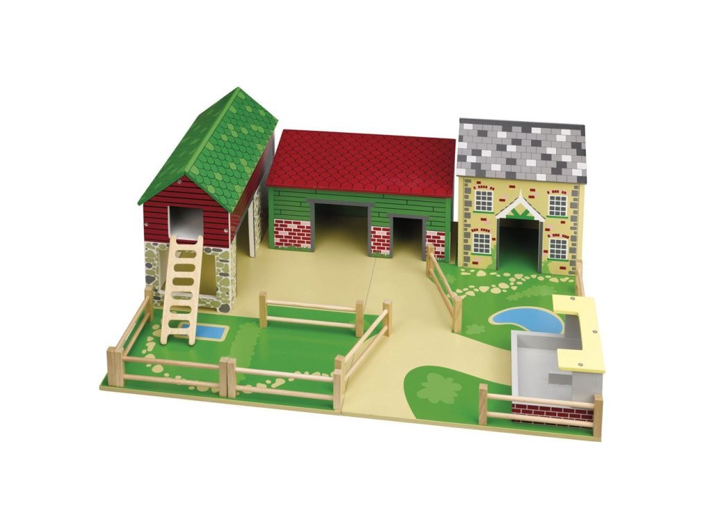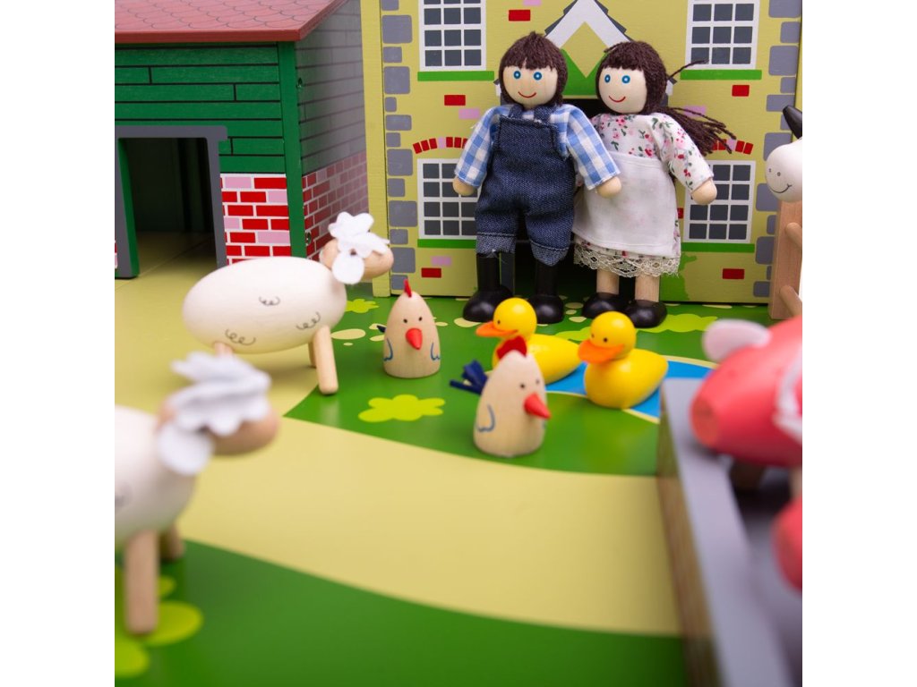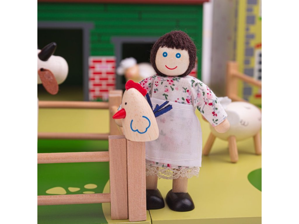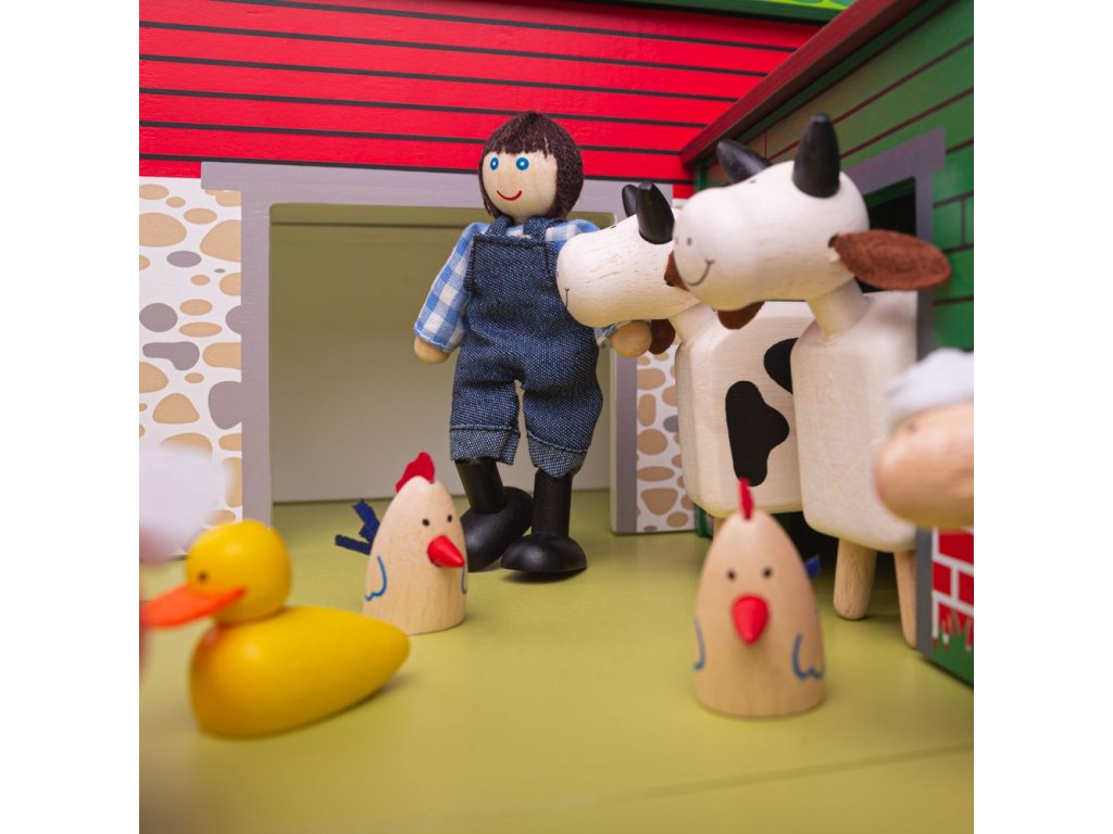 Jste připraveni na rušný den na farmě? Tato farma má vše, co mladý farmář potřebuje. Stodolu s půdou a žebříkem, stáje pro zvířata, dům pro farmáře, prasečí chlívek, plot a to vše na dřevěné podložce. Střechy budov jsou připevněny magnety, dají se tak jednoduše odebrat a zase vložit zpět. Zvířátka se prodávají zvlášť. Tato hračka děti naučí o zvířatech na farmě, kde žijí, jak se o ně starat. Podporuje kreativní a představivou hru. Rozvíjí koordinaci ruka-oko, jemnou motoriku a zručnost. Vyrobeno z kvalitních materiálů z odpovědných zdrojů. Odpovídá evropské bezpečnostní normě. Postavičky a zvířátka nejsou součástí balení. Hlavní vlastnosti: magnetické střechy domůpodporuje kreativitu a představivost