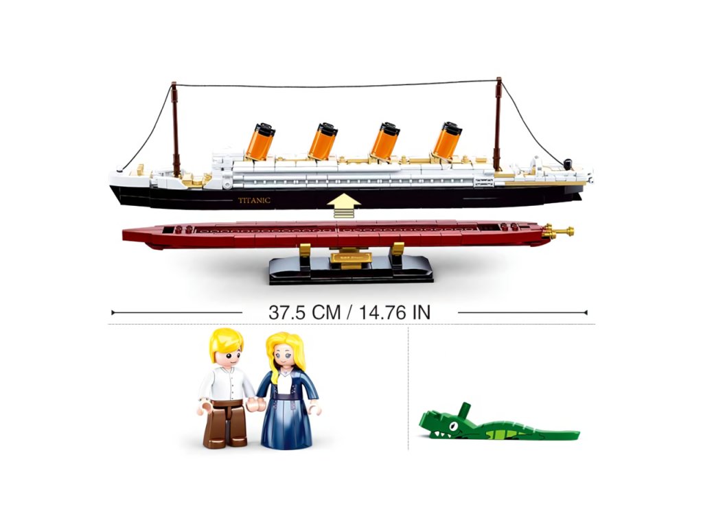 Stavba zaoceánského parníku může začít! Zkonstruovat Titanic zabralo dělníkům v loděnicích bezmála 3 roky. Tato zmenšenina (1:700) s výstavním stojánkem přiblíží rozsáhlost a velkolepost tohoto počinu. Jak dlouho budete stavět Vy? Inovativní stavebnice Sluban je možno kombinovat s podobnými stavebnicemi mnoha dalších významných výrobců. Jsou vyráběny z kvalitního, nezávadného a odolného ABS plastu. Každá stavebnice je opatřena návodem k sestavení a balena v pestře potištěné papírové krabičce. Hlavní vlastnosti: 481 dílků, 2 figurkyvysoká obtížnostinovativní figurky s otáčivými i výkyvnými částmi tělkompatibilní se stavebnicemi dalších výrobců