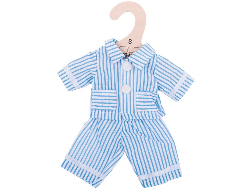Proužkované pyžamo modré barvy. Šaty lze obléci na panenky velikosti 28cm. Součástí balení je také věšáček. Hlavní vlastnosti: vhodné pro panenky o velikosti 28 cmtrénuje motoriku hravou formouvčetně věšáčku