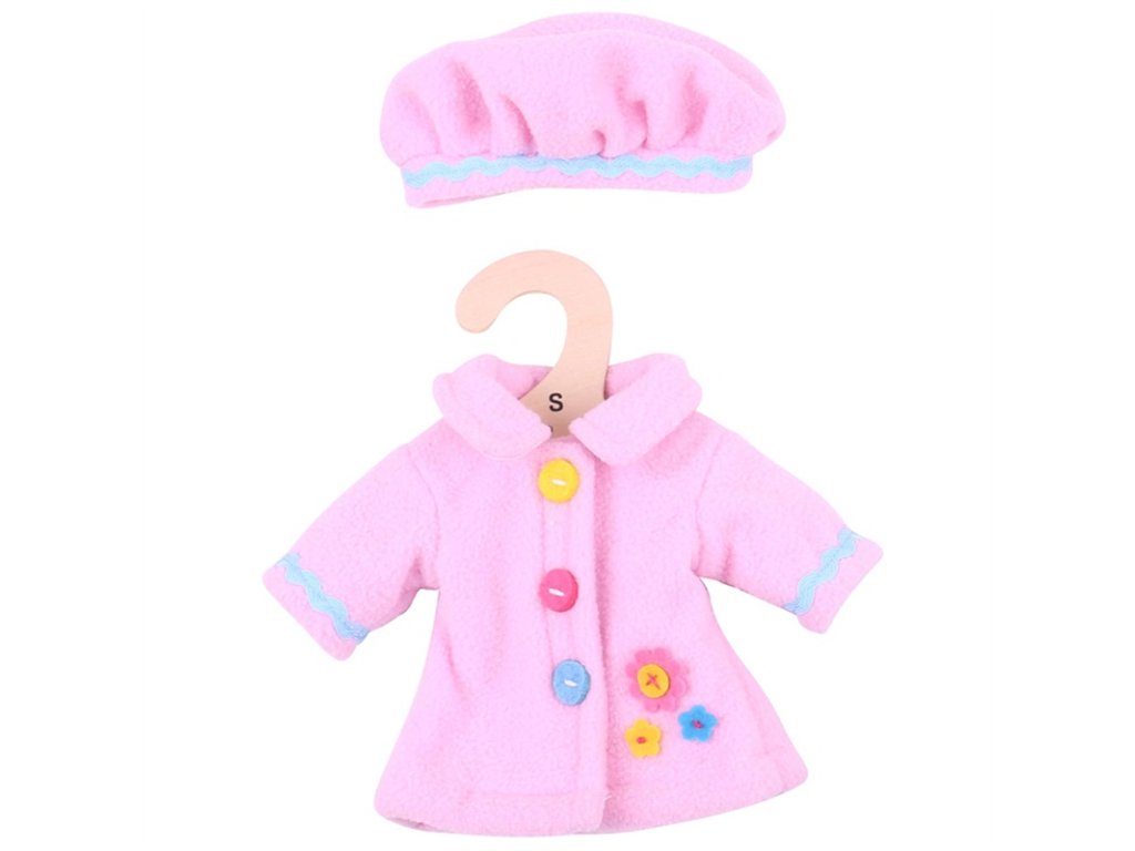 Bigjigs Toys Růžový kabátek s knoflíky pro panenku 28 cm