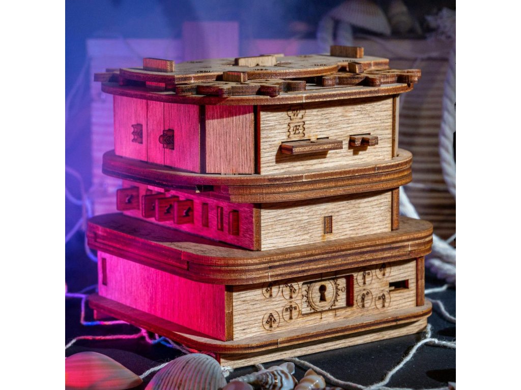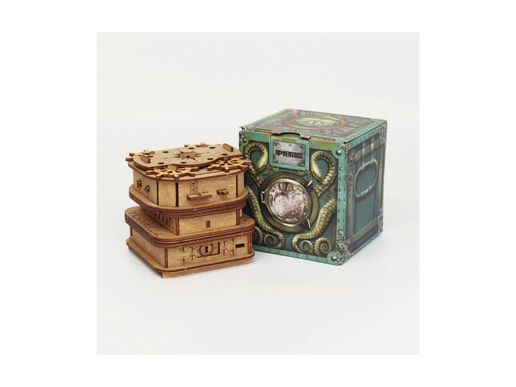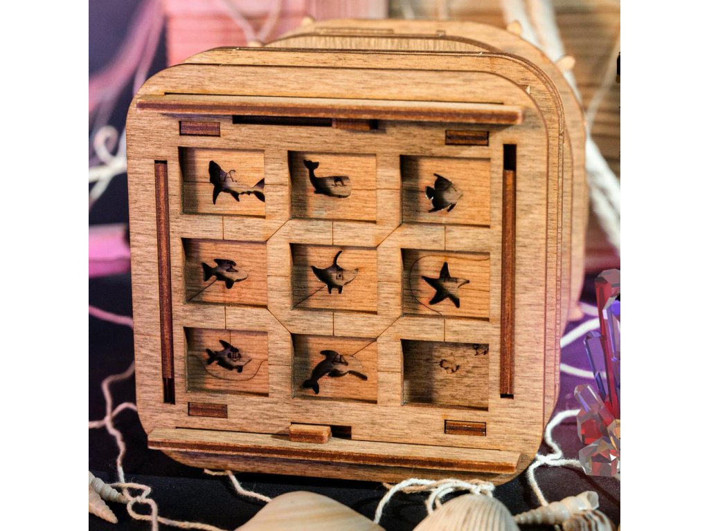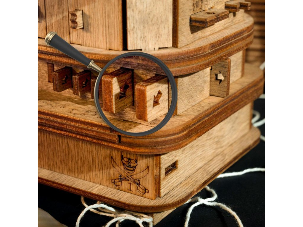 Už žádný nudný balící papír! Věnujte dárek s překvapením a zažijte strhující zábavu Chcete darovat peníze, šperk nebo jiný drobný dárek? A chcete předat dárek skutečně originálním způsobem? Spojte překvapení se zkouškou důmyslu a trpělivosti. S hlavolamem v inovativním designu vyrobeným z březového dřeva neuděláte chybu. Nenechte si ujít vzrušující zážitek ze hry. A nemusíte si hrát sami, zapojte celou rodinu nebo přátele. Hlavolam je pečlivě vyroben z přírodního materiálu a všechny jeho části byly přesně vyřezány nejlepší laserovou technologií. Příběh:Londýn, 1720. Ian Kensington, kapitán britských inženýrských sil, je zodpovědný za první úspěšné obnovení potopené lodi. Ve zprávě pro Jeho Veličenstvo anglického krále Jiřího I. Kensington poprvé zmiňuje skříňku Davyho Jonese. Přestože se jedná o skutečný artefakt, popisuje skříňku v kontextu legendy o mořském ďáblu Davy Jonesovi, který údajně zamyká zbloudilé duše všech námořníků, kteří na moři přijdou o život. Říká se, že na každé potopené lodi skrývá repliku skříňky a slibuje, že propustí všechny duše, pokud se někomu podaří skříňku otevřít. Od prvního nálezu byly podobné skříňky nalezeny ve vracích lodí roztroušených po celém světě. Některé z nich jsou dodnes uchovávány v soukromých sbírkách, jiné v muzeích. Jejich tajemství se však zatím nikomu nepodařilo prozradit. Jsme si jisti, že jste to vy, kdo konečně bude moci otevřít skříňku a donutit Davyho Jonese přiznat svou porážku! Hlavní vlastnosti: 72 dílkůdoba hry 60-90 minutvyrobeno z vysoce kvalitního březového dřevapro 1-2 hráčetajný prostor uvnitřkreativní dárkové balení pro malý dárekopakované použitívhodné od 14 let Jak hrát:Krok 1Řešte úkoly jeden po druhém, dokud neodhalíte tajný prostor. Krok 2Pokud si nebudete vědět rady, podívejte se na tuto webovou stránku. Krok 3Na konci dobrodružství na vás bude čekat překvapení a možnost zvěčnit své jméno na zdi slávy. Krok 4Po otevření hlavolam můžete znovu zavřít a předat dál, ať si zábavu užijí i ostatní. VAROVÁNÍ! Níže uvedená videa obsahují spoilery řešení! Prosím, sledujte pouze první 2 minuty, pokud si chcete užít hádanku a vyřešit hlavolam sami.