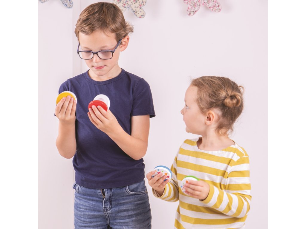 Cena je uvedena za 1 kus. Tyto dřevěné, barevné kastaněty s hvězdičkami jsou perfektní pro úvod do světa hudby. Děti se s nimi naučí zvuku a rytmu a kastaněty je také podpoří v kreativitě. Pomáhají rozvinout zručnost a koordinaci dětí. Vyrobeno z kvalitních materiálů z odpovědných zdrojů. Odpovídá evropské bezbečnostní normě. Hlavní vlastnosti: rozvíjí jemnou motoriku a kreativituhravý úvod do světa zvuku a rytmuvyrobeno ze dřeva a kovu