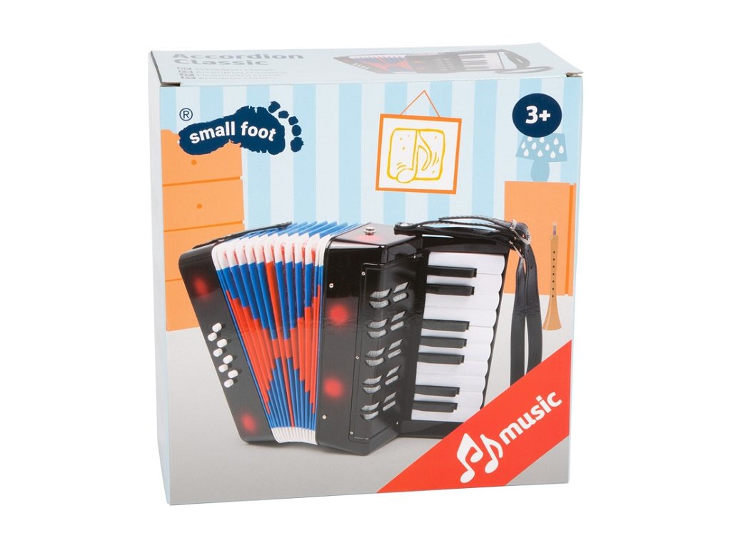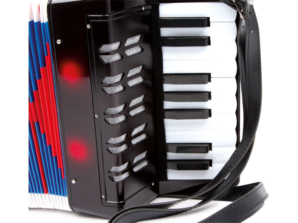 Nový design jednoho z oblíbených nástrojů v nabídce přináší svět hudby do dětských pokojů! Díky nastavitelným ramenním popruhům nemusí děti nástroj držet v rukou a mohou se soustředit na hraní. Ještě více kláves na lesklé lakované harmonice poskytuje potěšení z poslechu různých harmonií a trénuje jemnou motoriku uměleckým způsobem. Nejedná se o hudební nástroj, ale o hračku. Hlavní vlastnosti: hravý úvod do světa zvuku a rytmurozvíjí jemnou motoriku a kreativitukvalitní zpracování