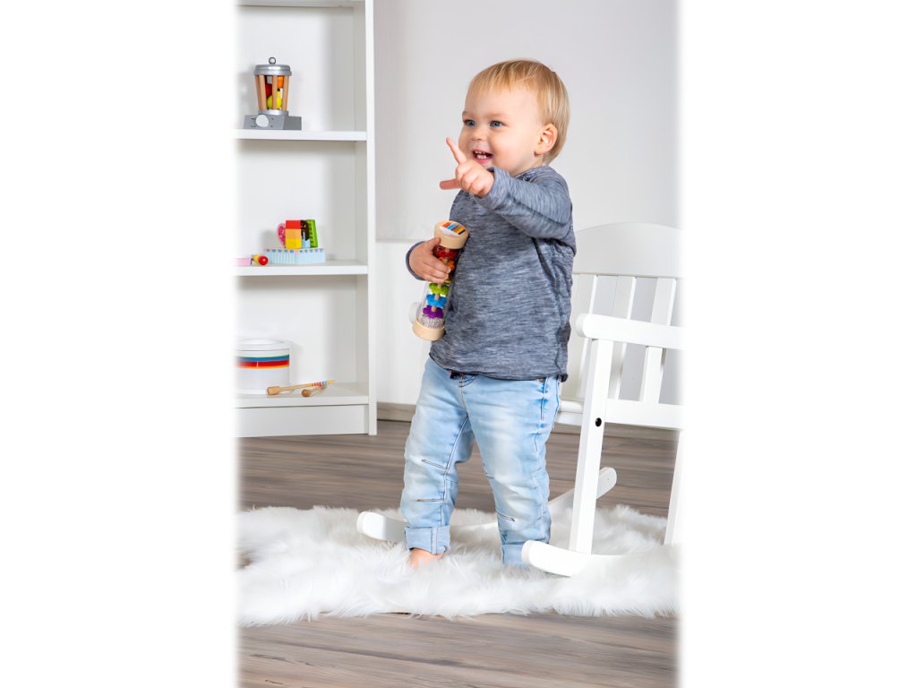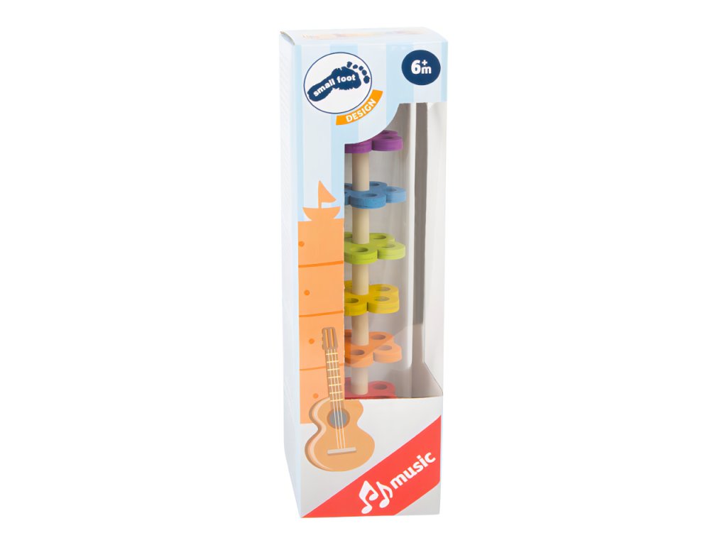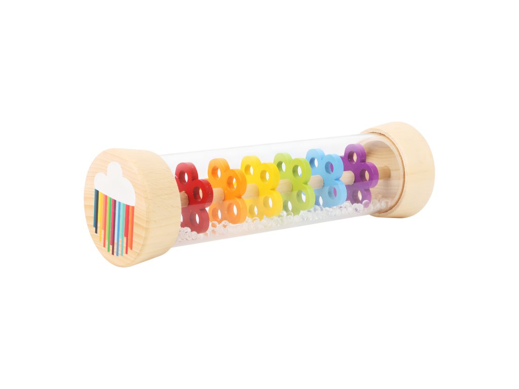Tak přesně takhle zní déšť! S dešťovou holí můžete imitovat zvuky jemného deště. Můžete ji použít jako chrastítko, rytmickou hračku. Tělo hračky je průhledné, můžete tak pozorovat jak se kuličky pohybují přes zábrany ve tvaru květin. Hlavní vlastnosti: hračka trénuje akustické a vizuální vnímánívhodná také jako chastítko pro nemluvňatauklidňuje smysly dětí i dospělých
