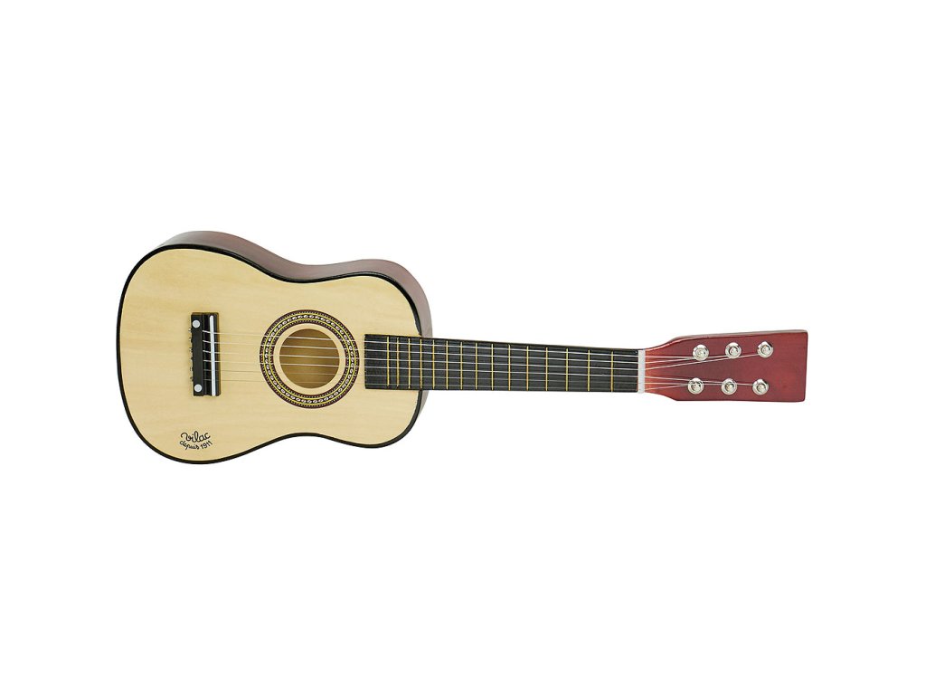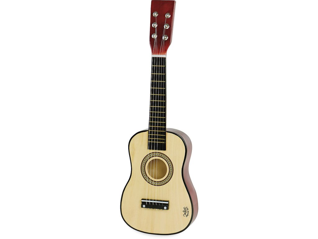 Klasická dřevěná akustická kytara s šesti strunami v barvě dřeva. Kytara má natažené nylonové struny. V balení s trsátkem a jednou náhradní strunou. Tuto hračku nelze pokládat za hudební nástroj. Hlavní vlastnosti: kvalitní zpracováníprohlubuje lásku k hudbě a rytmiku