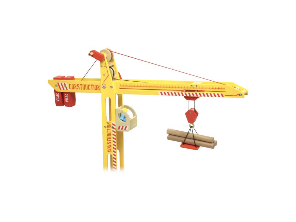 Dejte nový rozměr Vašemu staveništi a vrhněte se na stavbu těch nejvyšších budov se správným jeřábem. Svými impozantními rozměry se hračka stane nepřehlédnutelnou dominantou dětského pokojíčku. Množstvím pečlivě ztvárněných detailů, kabinou, protizávažími a kočkou nadchne každého fanouška stavební techniky. Díky široké podstavě je stabilní a umožňuje bezpečnou hru. Nabízí široké možnosti manipulace, celým jeřábem je možno plně otáčet, břemeno lze posouvat a pohodlně zvedat pomocí dvojice klik. Mezi dodávaným příslušenstvím naleznete pohyblivé figurky jeřábníka a dělníka, plošinu, magnet, různá břemena, ale i značky nezbytné k ohraničení probíhající práce. Vyrobeno z masivního dřeva a odolné překližky, ošetřeno atraktivními nezávadnými barvami. Hlavní vlastnosti: jeřáb, 2 figurky a 10 dílů příslušenstvíjeřábem lze volně otáčet, břemeno lze zvedat i posouvatsnadná manipulace pomocí klikatraktivní, detailní a odolné zpracování