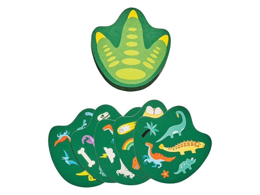 Trénujte svůj postřeh s dinosaury. Tato karetní hra nabízí až pět variant pravidel a je plná barevných ilustrací s tematikou dinosaurů. Jistě si ji rychle oblíbíte také pro její skladnost, je tak vhodná ke hře doma i na cestách. Baleno v kovové krabičce bez použití plastu. Hlavní vlastnosti pro 2–6 hráčů5 variant pravidelpraktické balení Návod ke hře: Základní varianta:Každému hráči rozdejte jednu kartu lícem dolů. Balíček otočený lícem nahoru umístěte mezi hráče. Na smluvený signál hráči otočí své karty. Hráč, který první nahlásí shodný symbol na své kartě a na kartě v balíčku, si kartu z balíčku vezme. Takto je balíček nakonec dobrán a vítězem se stává hráč s největším počtem karet. Obrácená varianta:Rozdejte mezi hráče karty tak, aby všichni drželi stejný počet karet a jedna karta zbyla. Hráči své karty v balíčku položí před sebe lícem dolů. Zbývající kartu, otočenou lícem nahoru, položte mezi hráče. Na smluvený signál hráči otočí svrchní kartu svého balíčku. Kdo jako první nahlásí symbol shodný na své kartě a kartě mezi hráči, svou kartu mezi hráče na vznikající kupku přiloží a otočí další svou svrchní kartu. Takto hra pokračuje, dokud nezůstane poslední hráč s kartami, a stává se tak poraženým. Hráč, který se karet zbavil jako první, je vítězem. Skupinová varianta:Hraje se na kola. V každém kole je před jednotlivce rozdáno po jedné kartě lícem dolů. Na smluvený signál hráči svou kartu otočí, a který z nich pojmenuje a nahlásí symbol shodný se symbolem na kartě jiného hráče, svou kartu mu předá. Takto hra pokračuje, dokud jeden hráč nepřijme všechny karty v jednotlivém kole rozdané. Cílem hry je zbavovat se karet, hráč, který v součtu kol přijal nejvíce karet, je poražený.