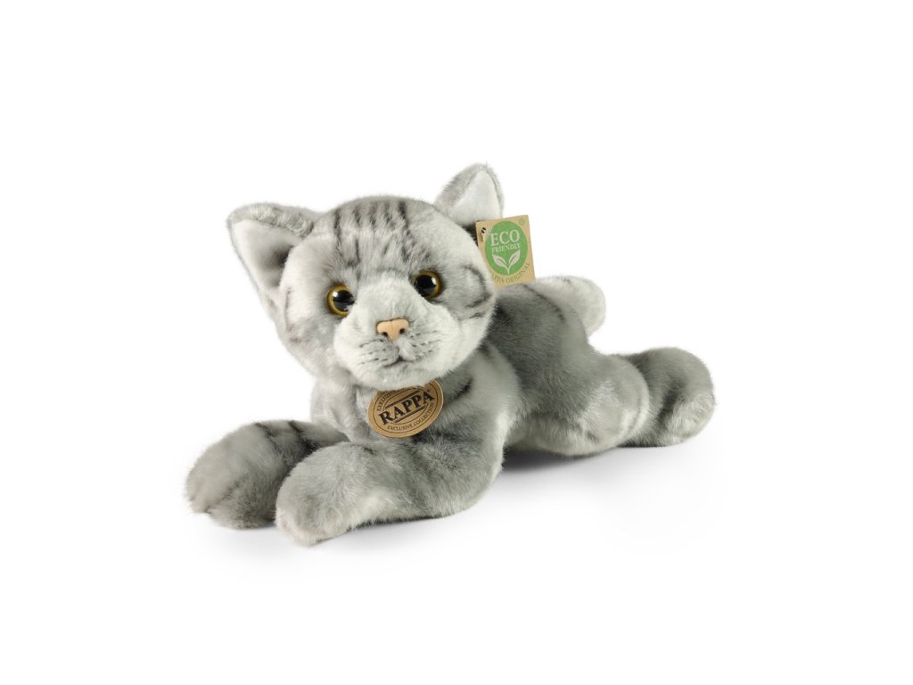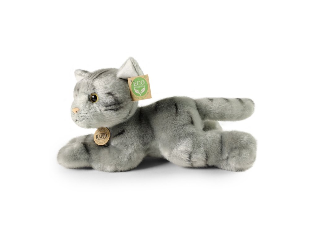 Rappa Plyšová kočka šedá ležící 30 cm ECO-FRIENDLY
