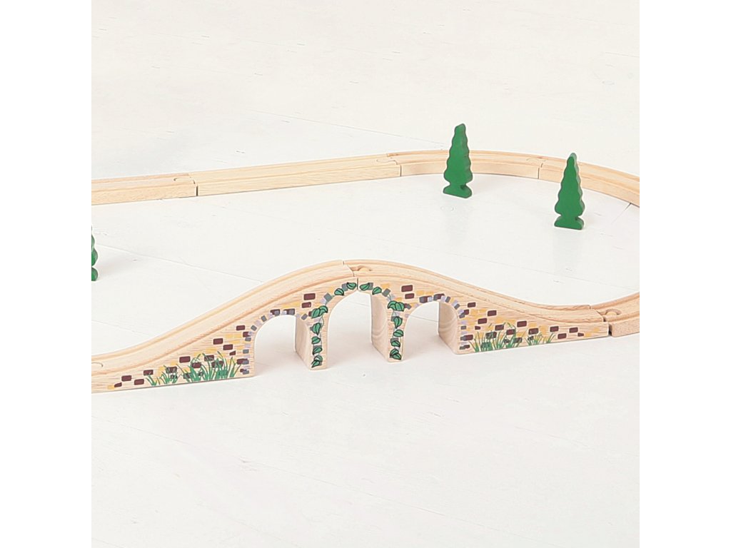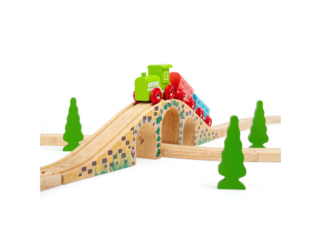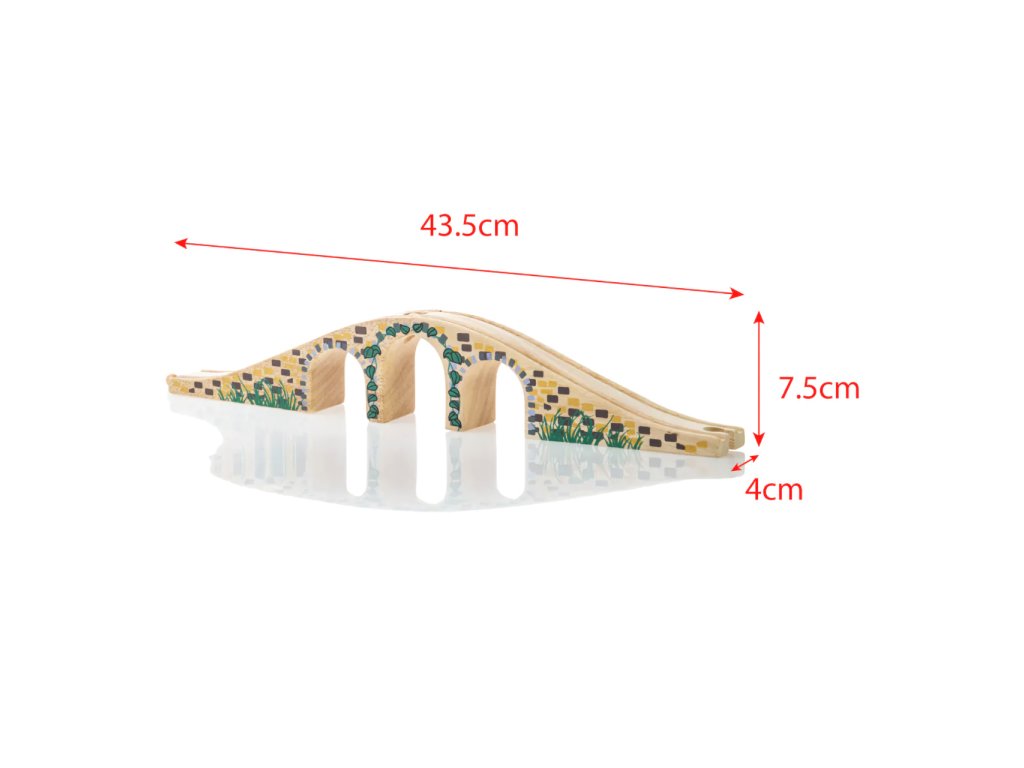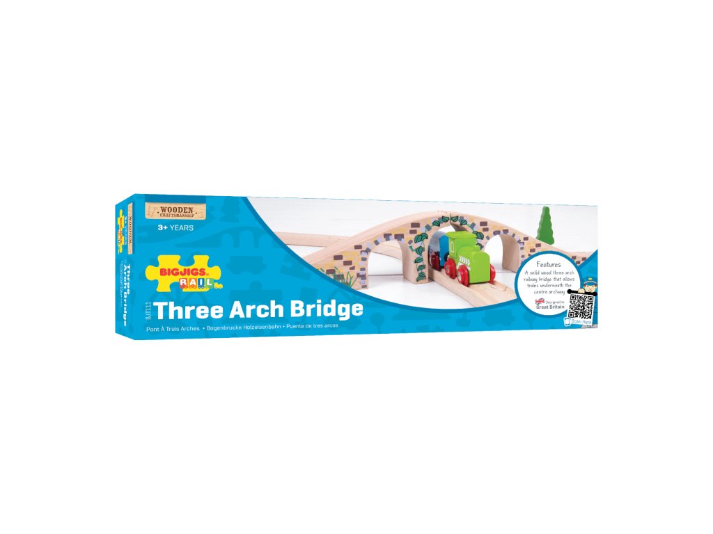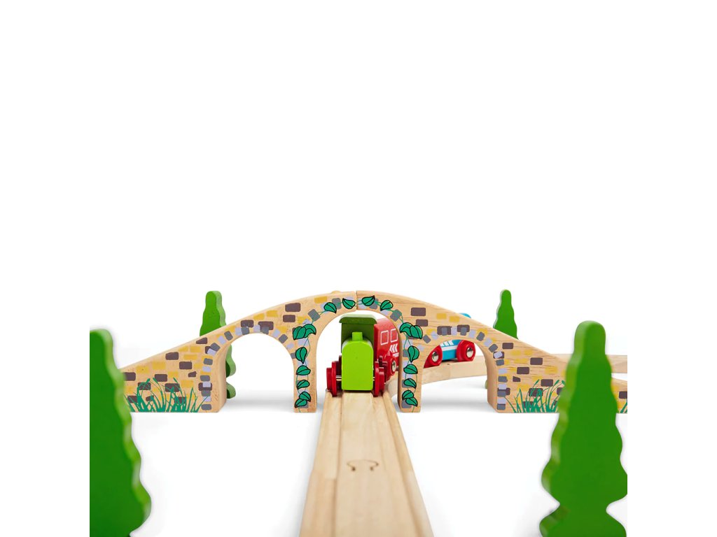 Potřebujete-li překonat vlakem řeku, silnici nebo křížení s jinou dráhou, pak budete potřebovat právě tento troj-obloukový most. S detaily kamenných cihel po jeho stranách a kvalitní povrchovou úpravou je tento most ceněným doplňkem každé dřevěné vláčkodráhy.Součástí balení je vše dle obrázku. Hlavní vlastnosti: vláčkodráhy a jejich příslušenství značky Bigjigs Rail je možno kombinovat se všemi dalšími dřevěnými vláčkodráhami na trhuvyrobeno z kvalitních a zodpovědně získaných přírodních materiálůodpovídá současným evropským bezpečnostním normámpodporuje představivost, obratnost a koordinaci