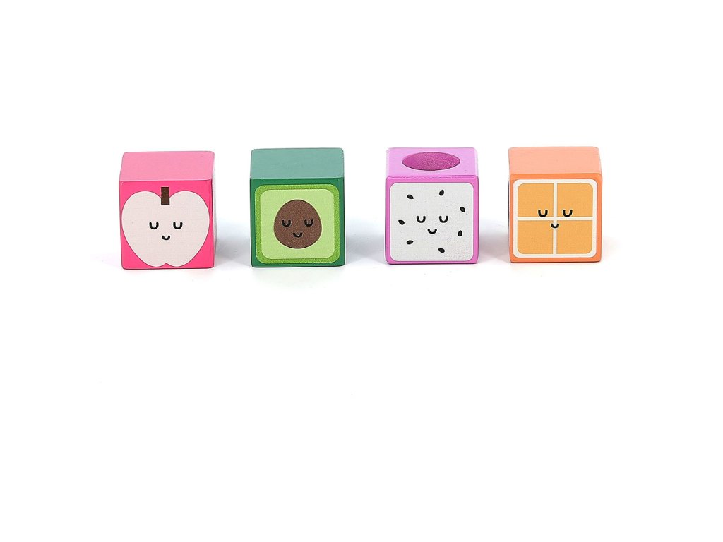 Jedenáct dřevěných zvukových kostek s motivem ovoce. S těmito kostkami si děti procvičí motoriku i zručnost a zároveň budou objevovat různé zvuky. Pro děti velmi poutavá hračka. Ilustrováno Andy Westface. Hlavní vlastnosti: edukativní senzorické kostkyobsahuje 11 kostekdesign Andy Westfacevyrobeno ekologicky, šetrně k životnímu prostředí Andy Westface je ilustrátor žijící a působící v Hongkongu. Svou prací se snaží zprostředkovat silné pocity a jasné myšlenky za pomoci jednoduchých tvarů, kompozic i barevnosti. Typickými prvky jeho děl jsou zvířata a duha, které si oblíbil pro jejich čistotu, upřímnost a schopnost vzbuzovat radost.