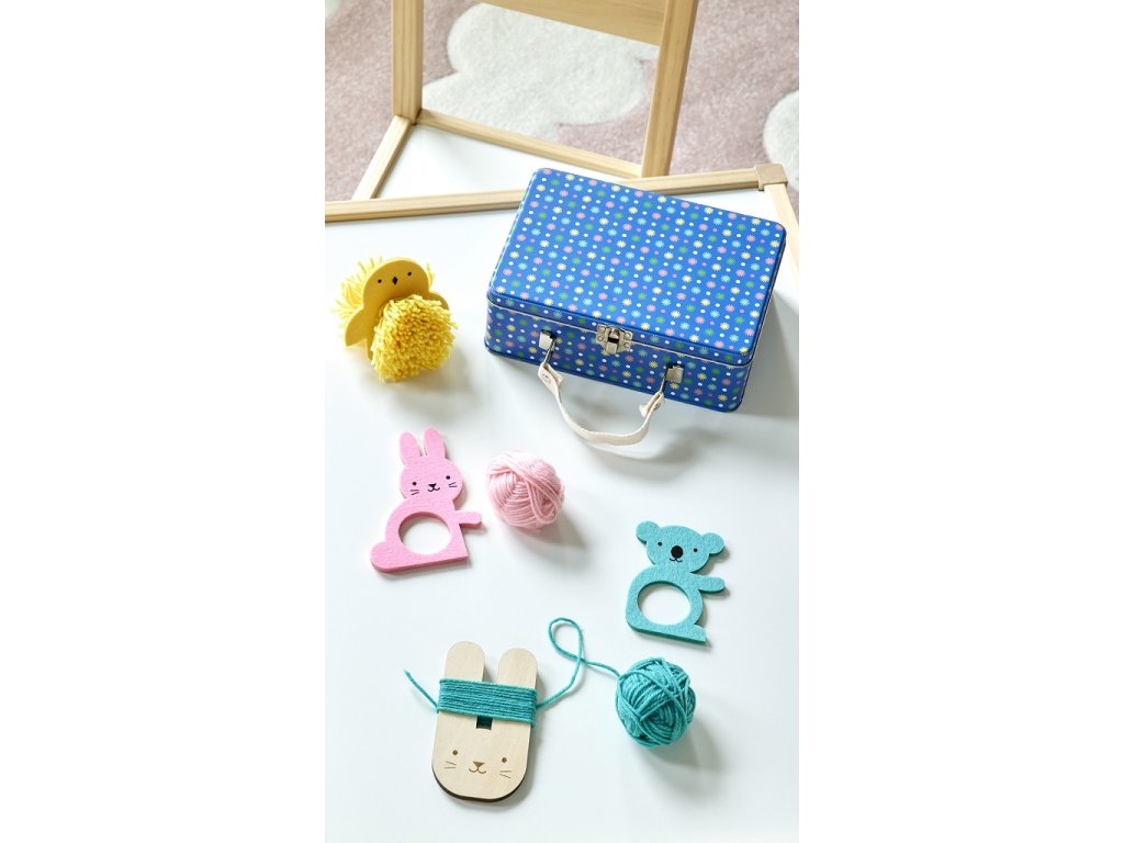 Sada na výrobu 5 zvířátek s bambulkami. Tato řemeslná sada obsahuje vše, co potřebujete k vytvoření pěti zábavných kamarádů. Sada obsahuje pět barevných přízí, pět plstěných zvířátek, 1 dřevěný bambulkovač a návod. Doporučeno pro děti od 6 let. Splňuje všechny evropské bezpečnostní normy. Hlavní vlastnosti: rozvíjí kreativitu a zručnostobsahuje 5 barevných přízí, 5 plstěných zvířátek a 1 bambulkovač z FSC dřevapraktický kovový kufřík