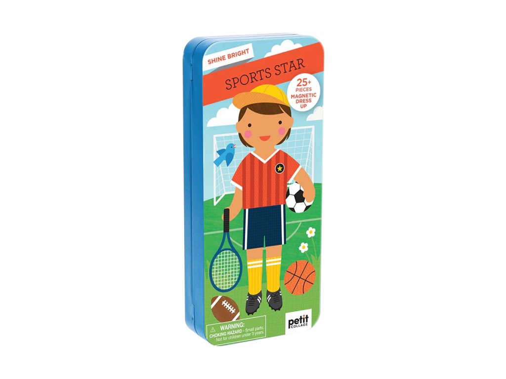 Fotbal, tenis či baskteball? Jsi energický týmový hráč? Ukaž se a následuj své záliby! Sada je navržená k tomu, aby inspirovala děti v cestě za splněným snem. Toto magnetické puzzle je skvělým dárkem pro vášnivé sportovce. K dispozici je řada magnetických částí oděvu a profesní výbavy, které s venkovními scénami ve vnitřních prostorách odolné kovové krabičky tvoří praktickou sadu i na cesty. Hra nabízí nekonečné množství kombinací nabízejících velký prostor pro vlastní fantazii. Hlavní vlastnosti: obsahuje 34 magnetických dílků a 2 pozadípraktické balení vhodné i na cestypodporuje kreativitu Značka a certifikát FSC® (Forest Stewardship Council) zaručuje, že dřevo, ze kterého byl produkt vyroben, nebylo vytěženo nelegálně a pochází z lesů obhospodařovaných šetrným či přírodě blízkým způsobem, ve kterém jsou dodržovány přísné environmentální a sociální požadavky. Značka FSC® na výrobku znamená, že svým nákupem pomáháte chránit lesy a podporujete šetrné, odpovědné či přírodě blízké hospodaření, díky kterému jsou naše lesy stabilnější, zdravější, mají přirozenou druhovou skladbu a lépe odolávají negativním následkům klimatických změn.