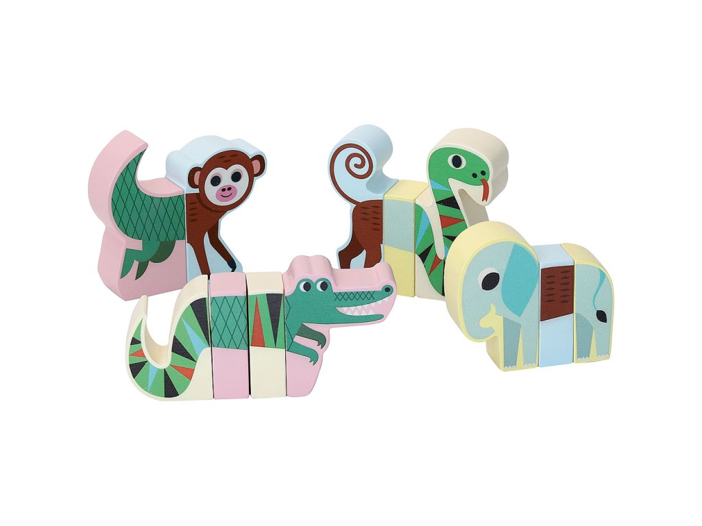 Zábavné dřevěné magnetické puzzle s ilustrací Ingely P. Arrhenius. Čtyři zvířátka džungle, jejichž těla můžete kombinovat. Vhodné od 2 let. Hlavní vlastnosti: rozvíjí motoriku dětíobsahuje 12 dílkůdesign Ingela P. Arrhenius Švédská umělkyně Ingela Peterson Arrhenius se narodila v roce 1967. Umění a design měly vždy místo v jejím životě a než začala její kariéra ilustrátorky, Ingela pracovala jako umělecká vedoucí ve Stockholmu. Poté studovala reklamní a grafický design na umělecké škole také ve Stockholmu. V roce 1992 začala podnikat jako ilustrátorka na volné noze a pracovala mezinárodně napříč reklamou, designem, nakladatelstvím… V minulosti vytvářela tiskové vzory pro tkaniny, tapety, papírnictví, také pracovala na obalech, produktovém designu, bytových doplňcích a hračkách. Její plakáty a designové hračky najdete po celém světě. Má vášeň pro retro styl, což je jasně vidět na jejich dílech a také v jejím nadšení pro typografii a barvy. Nyní žije ve Stockholmu s manželem a dvěma syny.