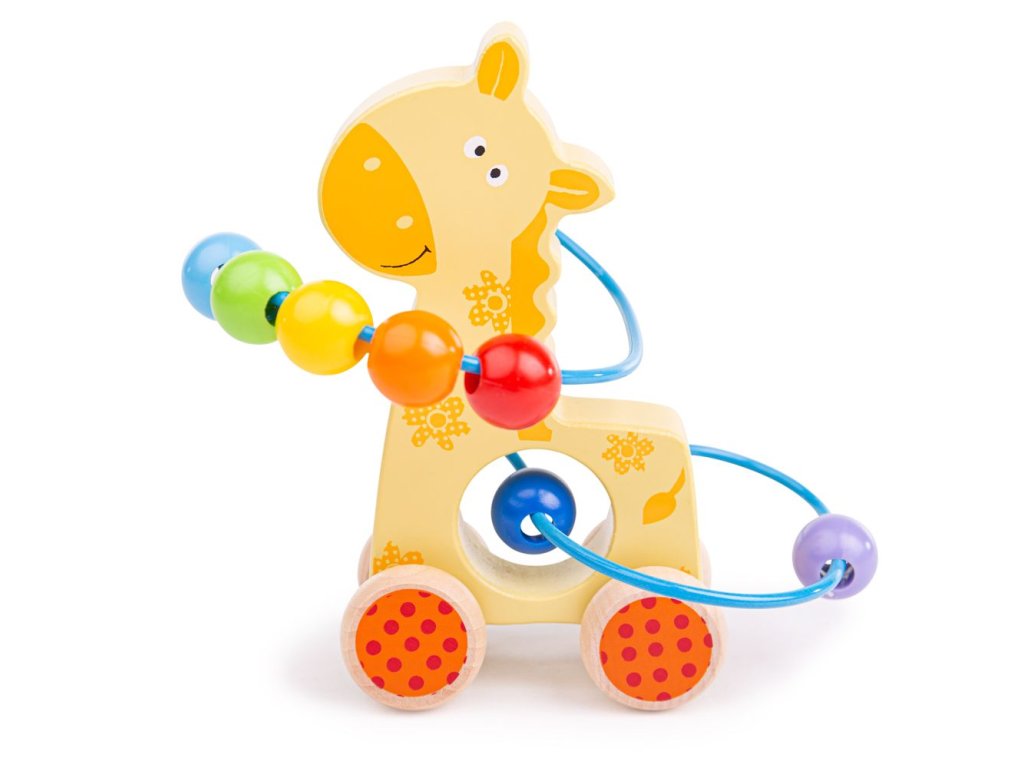 Tato pestrobarevná dřevěná žirafa na kolečkách s kovovým korálkovým labyrintem je velmi oblíbená u našich nejmenších. Podporuje motoriku dětí a rozvíjí obratnost a koordinaci. Vyrobeno z vysoce kvalitních a zodpovědně zpracovaných materiálů. Vyhovuje současným evropským bezpečnostním normám.  Hlavní vlastnosti: velmi oblíbená hračkarozvíjí motorické dovednosti a smysly dítěte