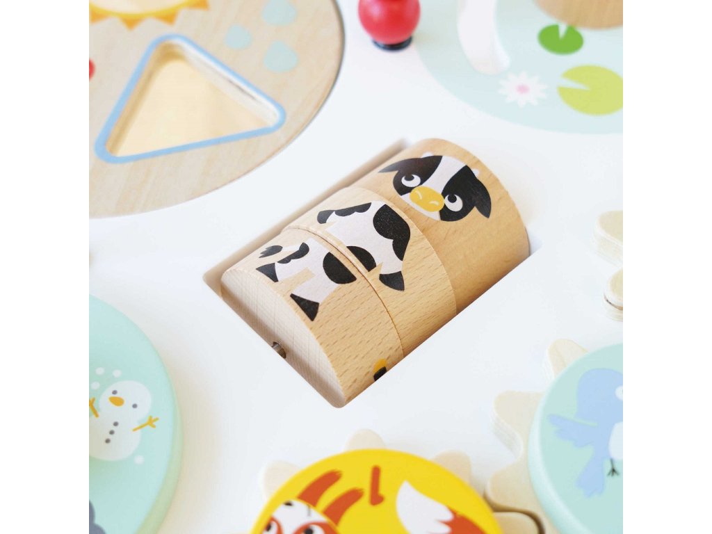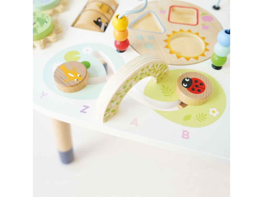 Tento aktivní motorický stůl potěší nejen oko, ale také ostatní smysly. Perfektní hračka pro batolata, pomůže s rozvojem představivosti. Stoleček je plný multisenzorických aktivit, které zabaví všechny zvídavé děti. Najdou na něm korálkový labyrint, vkládačku, xylofon, ozubená kolečka, otočné chrastítko a další! Takový počet aktivit děti zabaví na dlouhé hodiny.Tento robustní stoleček vám vydrží opravdu dlouho, je vyroben z udržitelného FSC® dřeva a dekorován zářivými základními barvami, které jsou netoxické. Senzorické hračky Le Toy Van si můžete předávat z generace na generaci. Hlavní vlastnosti: vyrobeno z FSC dřevamultifunkční dřevěný aktivní stolekrozvíjí dětské smysly během hryveselý pestrobarevný design stimuluje představivostudržitelná hračka inspirována přírodou Petilou kolekce: Kolekce pro nemluvňata a batolata od Le Toy Van obsahuje hlavně hmatové hračky, které mají nejmenším posloužit také jako učební prostředky. Kolekce je inspirována přírodou kolem nás a je navržena tak, aby rozvíjela smysly dětí pomocí rozdílných zvuků, textur, tvarů a hmotností. Děti tak od malička zapojí všechny své smysly. V kolekci najdete například skládačky, vkládačky, chodítka, … Značka a certifikát FSC® (Forest Stewardship Council) zaručuje, že dřevo, ze kterého byl produkt vyroben, nebylo vytěženo nelegálně a pochází z lesů obhospodařovaných šetrným či přírodě blízkým způsobem, ve kterém jsou dodržovány přísné environmentální a sociální požadavky. Značka FSC® na výrobku znamená, že svým nákupem pomáháte chránit lesy a podporujete šetrné, odpovědné či přírodě blízké hospodaření, díky kterému jsou naše lesy stabilnější, zdravější, mají přirozenou druhovou skladbu a lépe odolávají negativním následkům klimatických změn.