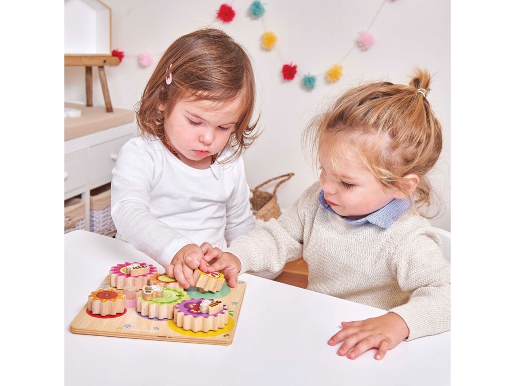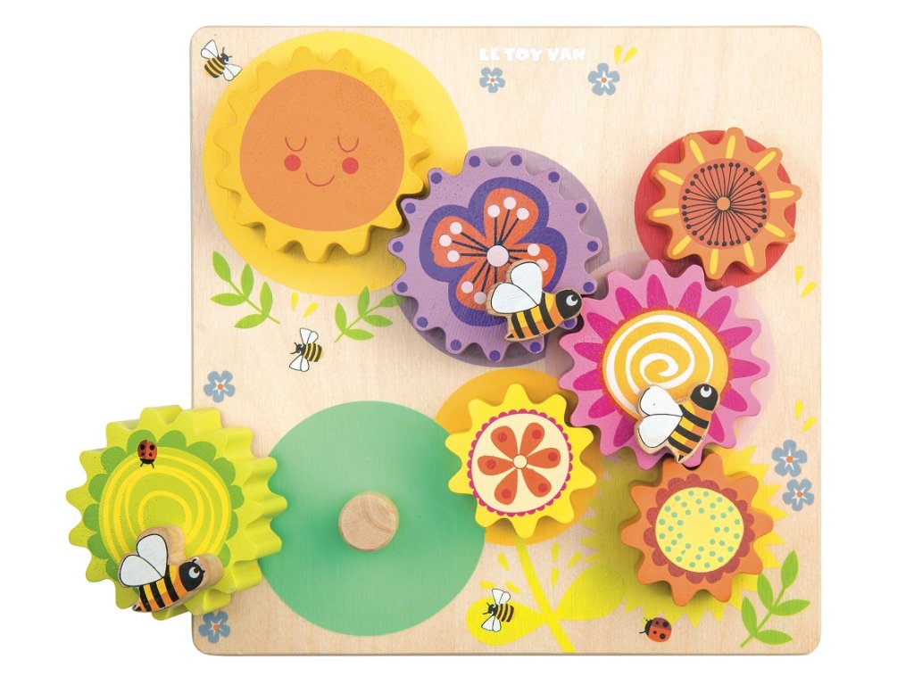 Tato pestrobarevná ozubená kolečka rozzáří každý dětský pokoj. Jsou připevněna na dřevěné desce, svými ilustracemi přírody – včelek, květin a veselého slunce jistě upoutají pozornost dětí. Tato hračka dětem pomůže s pochopením mechaniky ozubených kol jednoduše a efektivně. Také podpoří kognitivní rozvoj a naučí poznávat barvy. Odolná hračka je vyrobena z udržitelného kaučukového dřeva. Hračky s účelemVšechny hračky firmy Le Toy Van jsou vyrobeny s cílem – aby dlouho vydržely. Designovány s láskou zkušenými řemeslníky za použití etických praktik a udržitelných materiálů, které jsou laskavější k naší planetě. Hlavní vlastnosti: vyrobeno eticky z udržitelného dřevatestováno dle nejpřísnějších standardůmalováno netoxickými barvami na bázi vodyinspiruje k představivé hřerozvíjí kognitivní dovednosti Ocenění hračky:Junior Design Silver Award 2017Good Toy Guide Recommended Petilou kolekce: Kolekce pro nemluvňata a batolata od Le Toy Van obsahuje hlavně hmatové hračky, které mají nejmenším posloužit také jako učební prostředky. Kolekce je inspirována přírodou kolem nás a je navržena tak, aby rozvíjela smysly dětí pomocí rozdílných zvuků, textur, tvarů a hmotností. Děti tak od malička zapojí všechny své smysly. V kolekci najdete například skládačky, vkládačky, chodítka, …