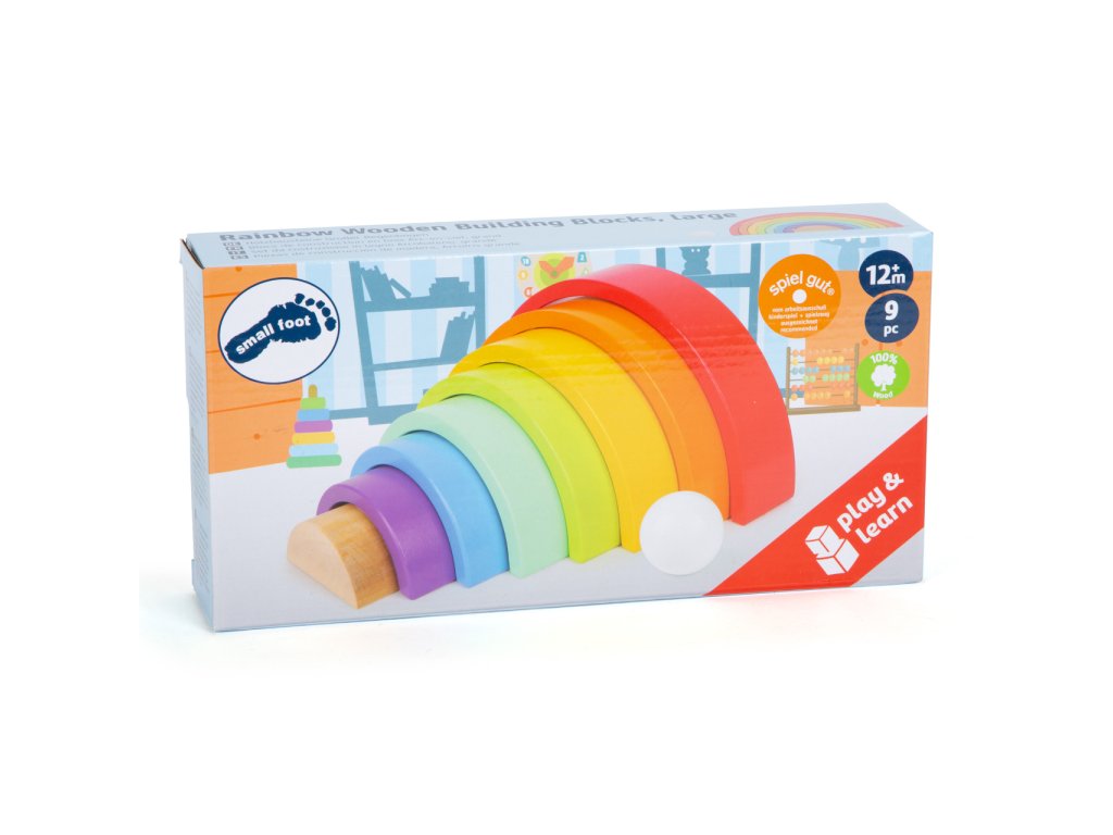 Která barva je nejkrásnější? Tuto robustní dřevěnou duhu doplňuje bílá dřevěná kulička. Archa v barvách duhy je univerzální, můžete ji skládat na sebe, stavět z ní dráhy... Perfektní hračka pro kojence, trénuje motoriku. Hlavní vlastnosti: rozvíjí představivost a jemnou motoriku dítětemožnost naučit se barvy a tvaryprostorové povědomí a obratnostkoordinace ruka-okopomáhá učit se tvořivosti a logickému myšlení