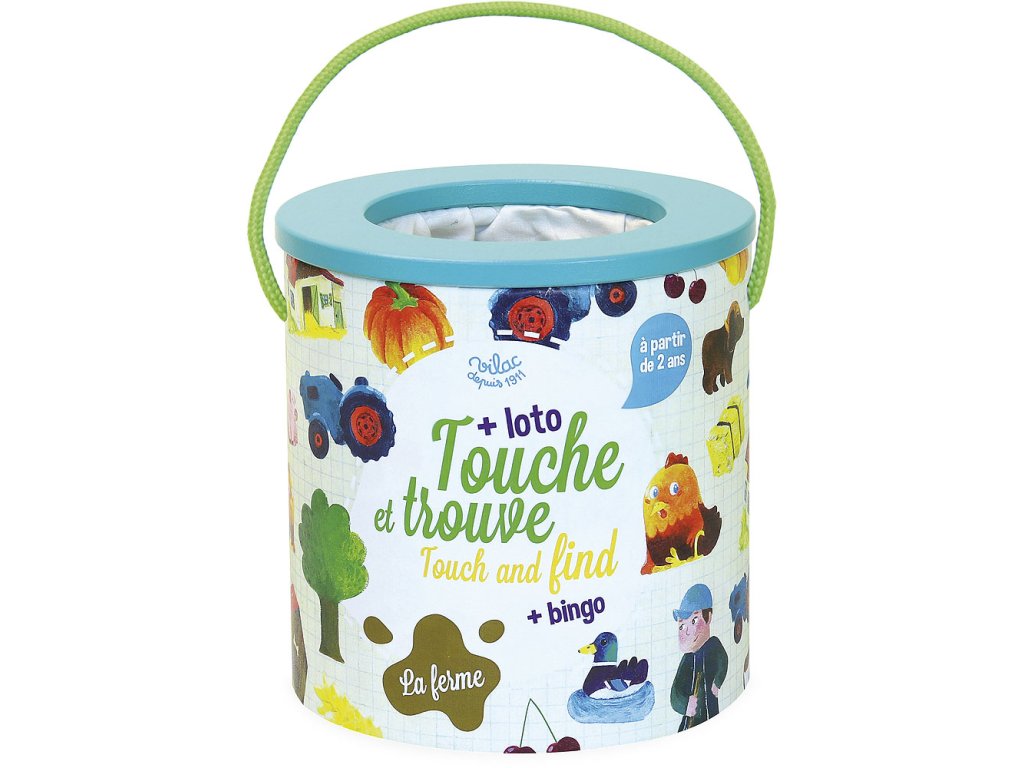 Nepřekonaný bestseller Vilac se originálním způsobem snaží rozvíjet často opomíjený smysl dětí, hmat. Hra je tvořená zejména dřevěnými figurkami ukrytými v kyblíku vybaveném uvnitř jemným látkovým sáčkem. Menší děti mají za úkol po vložení ruky do tuby jen na základě hmatání popsat svými slovy, jaký předmět drží v ruce. Rodiče mohou postup dětem předvést názorným příkladem. Starší děti mohou hrát hru ve formě lota, nebo binga, k těmto hrám jsou v sadě k dispozici obrázkové karty jednotlivých předmětů. Hlavní vlastnosti: 21 herních dílků a 20 obrázkových karetpro 2–5 hráčůrůzné herní variantypraktické balení Návod ke hře: Hmatej a najdi:První hráč si vezme kartu z hromádky. Poté musí sáhnout do sáčku a podle hmatu najít dřevěný dílek, který odpovídá obrázku na kartě. Pokud vybere správný dílek, kartu si ponechá a na řadě je další hráč, který opět začíná tažením karty z hromádky. Pokud ale první hráč vybere nesprávný dílek, musí svou kartu předat dalšímu hráči, který se musí pokusit najít správný dílek. Po každém kole se dílky vrací zpět do sáčku. Když už na hromádce nezbývá žádná karta, určí se vítěz. Vítězí hráč s největším počtem karet. Pozor! Pokud jeden z hráčů náhodou vytáhne dílek ve tvaru muchomůrky, musí všechny své karty vrátit na hromádku! Pravidla můžete upravit dle vlastního uvážení, aby se děti lépe seznámily s hmatáním a hledáním předmětů: 1 – Začněte s malým množstvím dřevěných dílků.2 – Dovolte dětem podívat se do sáčku.3 – Poté hru opět udělejte o něco těžší, nedovolte jim nahlížet do sáčku.4 – Přidejte do sáčku více dílků.5 – Nakonec, až si děti na hru zvyknou, hrajte podle tradičních pravidel. BINGO varianta:Rozložte 4 karty do čtverce a vytvořte jedno, nebo více hracích polí pro každého hráče. Jeden z hráčů, nebo rodič vytáhne dílek ze sáčku a vyvolá ho. Hráč, který má kartu odpovídající tomuto vyvolanému dílku, si jej vezme a položí na svou kartičku. Vítězí hráč, který jako první zaplní své herní pole! Dokumentace: Návod ke hře Hmatej a najdi farma (CZ)Návod ke hře Hmatej a najdi farma (SK)