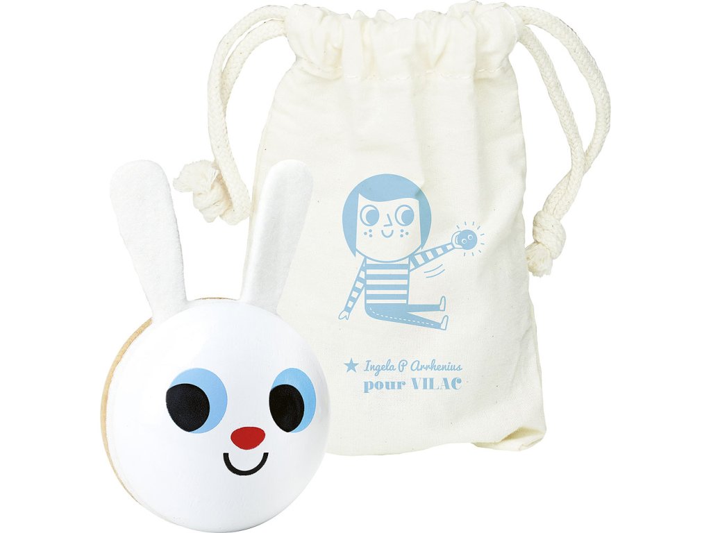 Pěkný zajíček jako chrastítko – rumba koule. Ilustrace Ingela P. Arrhenius. Vyrobeno ze dřeva a plstě ve Francii. Průměr 8 cm. Hlavní vlastnosti: vyrobeno ve Franciidesign Ingela P. Arrhenius Švédská umělkyně Ingela Peterson Arrhenius se narodila v roce 1967. Umění a design měly vždy místo v jejím životě a než začala její kariéra ilustrátorky, Ingela pracovala jako umělecká vedoucí ve Stockholmu. Poté studovala reklamní a grafický design na umělecké škole také ve Stockholmu. V roce 1992 začala podnikat jako ilustrátorka na volné noze a pracovala mezinárodně napříč reklamou, designem, nakladatelstvím… V minulosti vytvářela tiskové vzory pro tkaniny, tapety, papírnictví, také pracovala na obalech, produktovém designu, bytových doplňcích a hračkách. Její plakáty a designové hračky najdete po celém světě. Má vášeň pro retro styl, což je jasně vidět na jejich dílech a také v jejím nadšení pro typografii a barvy. Nyní žije ve Stockholmu s manželem a dvěma syny.