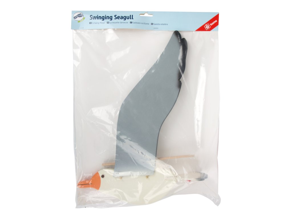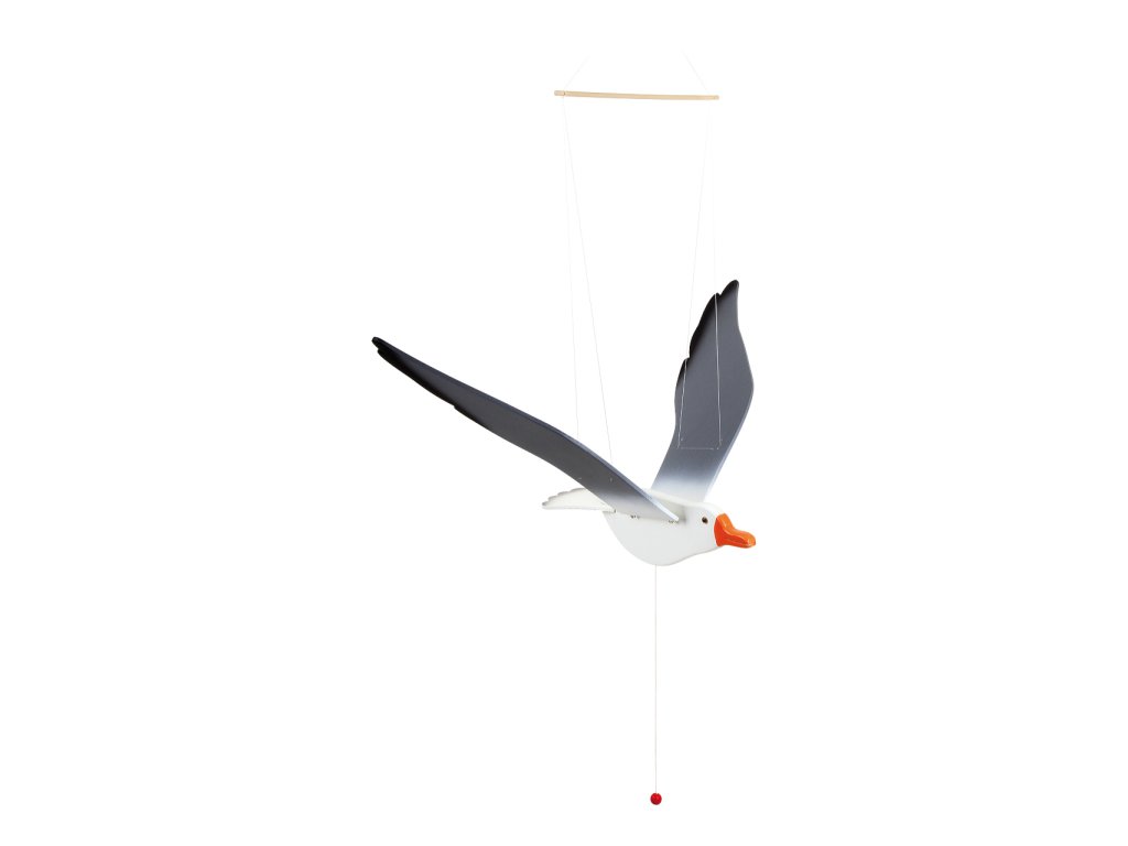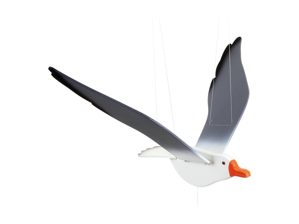 Velký dřevěný racek rozpíná křídla do šířky cca 74 cm. Zatažením za šňůrku s korálkem se jeho mohutná křídla dají do pohybu. Letí! Kam poletí a co tam uvidí je otázkou Vaší fantazie. Hlavní vlastnosti: vyrobeno z kvalitního pevného dřeva dekorativní prvek