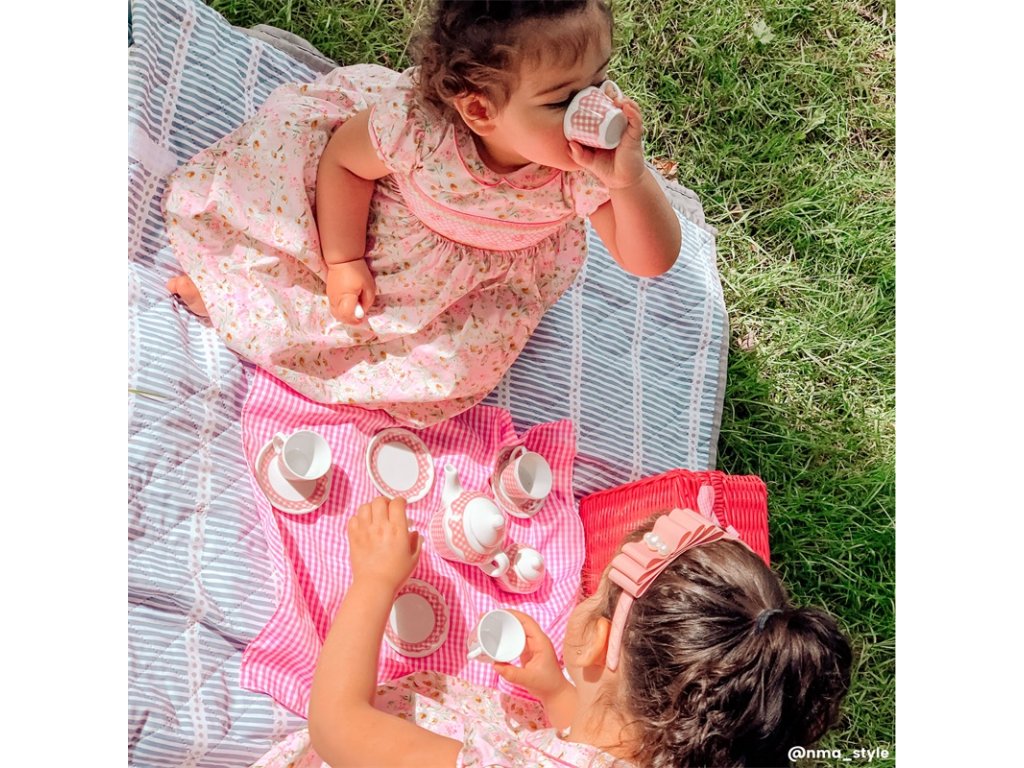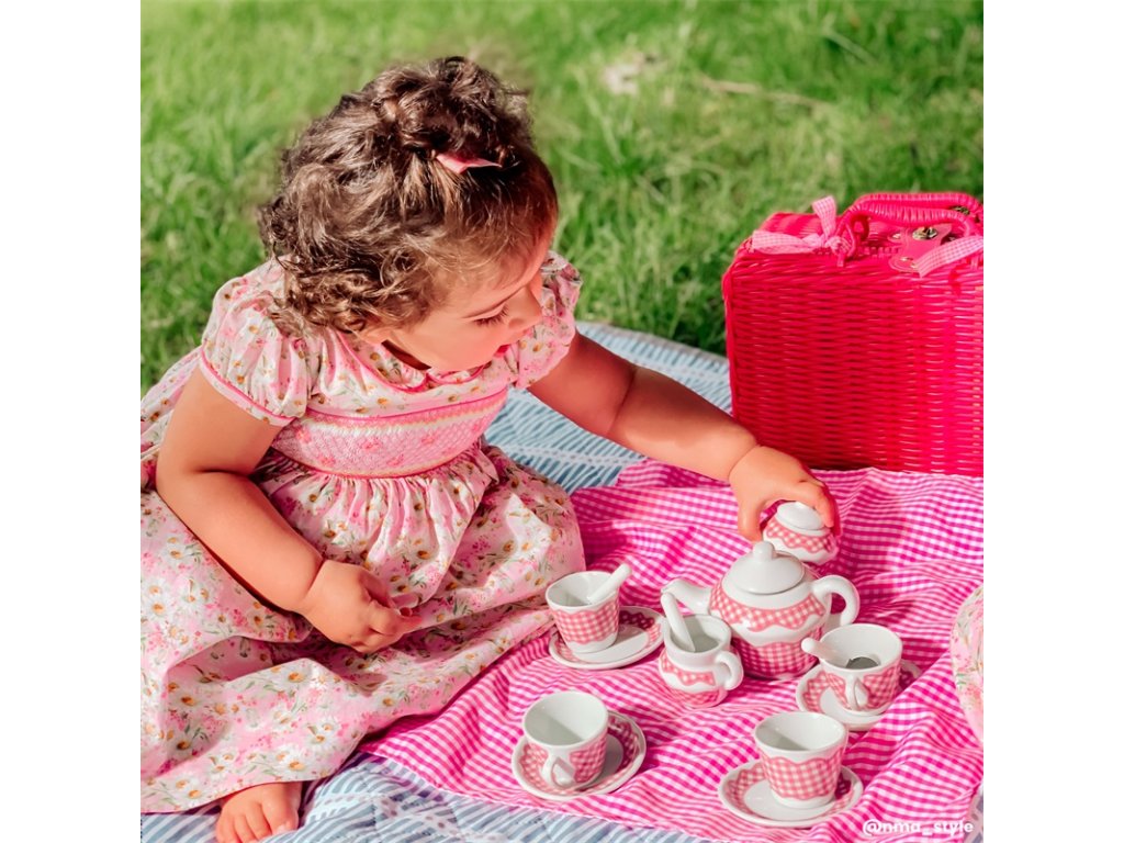 Pohostěte své plyšáky a panenky luxusním čajovým dýchánkem. Tradiční čajový set je zabalen v pleteném růžovém koši a skládá se z 4 porcelánových talířků, hrníčků, lžiček, nádoby na mléko, čajové konvice, cukřenky, textilních ubrousků a malé deky. Pletený koš má madlo a je uzamykatelný, ideální na cesty. Podporuje kreativní a představivou hru. Rozvíjí koordinaci ruka-oko, jemnou motoriku a zručnost. Odpovídá evropské bezpečnostní normě. Hlavní vlastnosti: tradiční čajový set v pleteném růžovém košiuzamykatelný koš, ideální na cestypodporuje kreativní a představivou hru