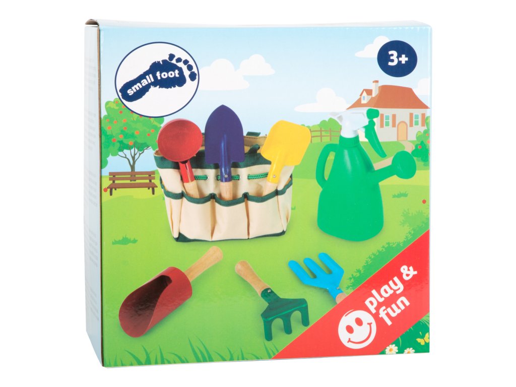Poškozený obal, nové zboží bez závad. Pro malé zahradníky a zahradnice. Zažijte přírodu na vlastní oči a užijte si mnoho zábavy ve vlastní zahradě a to s tímto nářadím a konví. Robustní zahradní brašna má mnoho úložného místa pro 7 zahradních nástrojů. V balení lopatka, konev se sprejem, hrabky, aj. Hlavní vlastnosti: nářadí se ukládá do praktické brašny z pevné látkykovové nářadí s dřevěnými násadami ve vhodné velikosti pro děti