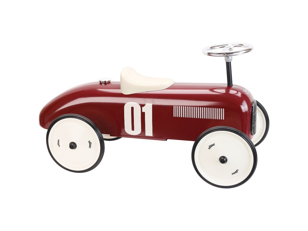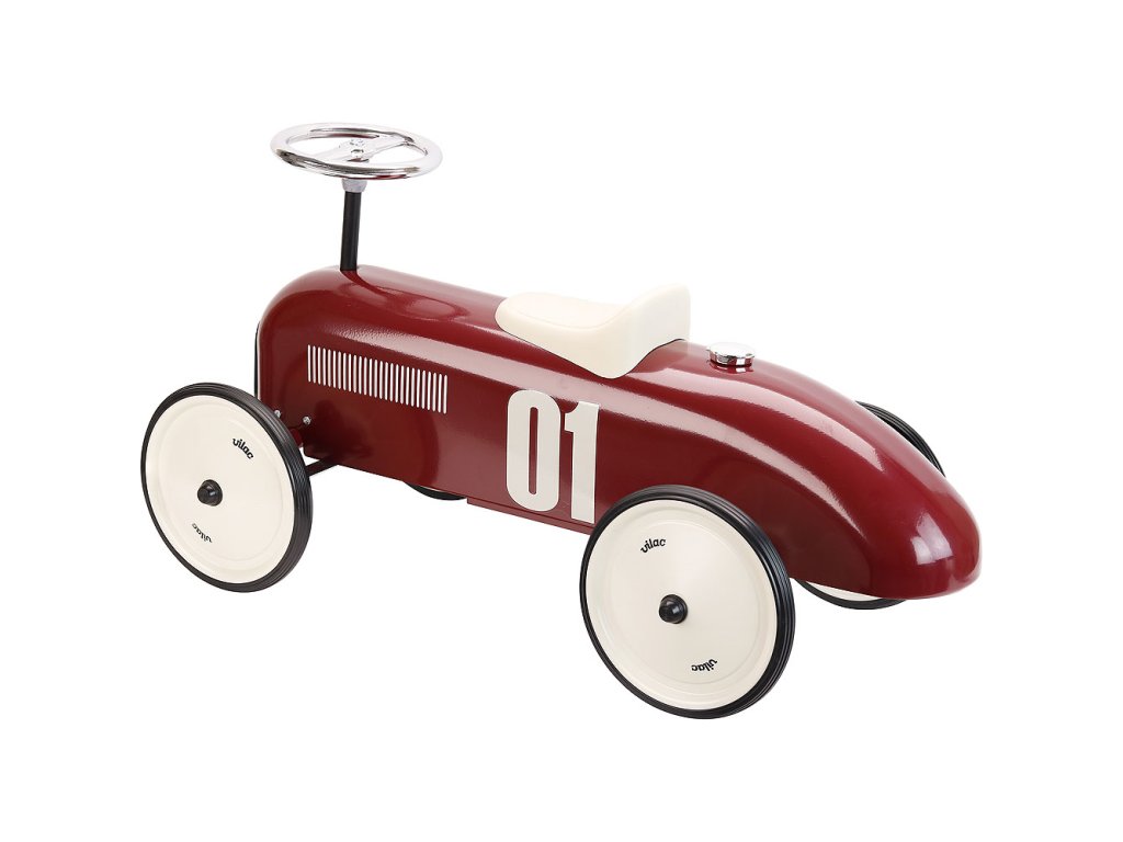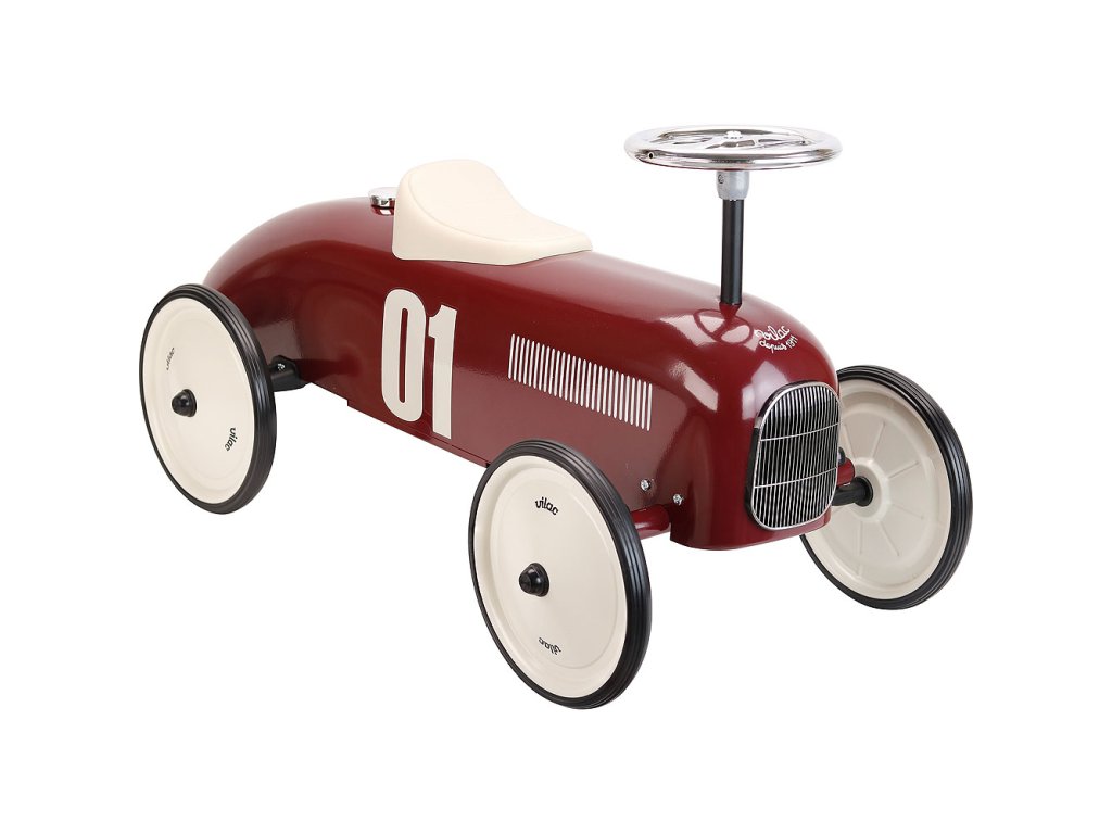 Odrážedlo Vintage ve stylu závodního auta je plně kovové a má bordó metalickou barvu. Volant ovládá zatáčení předních kol. Bílé sedadlo je vyrobeno z plastu. Kola odrážedla jsou pogumovaná a zaručují tak tichý chod i na pevném povrchu. Hlavní vlastnosti: stabilní kovové odrážedlo s pogumovanými kolystylový originální designenosnost 20 kg