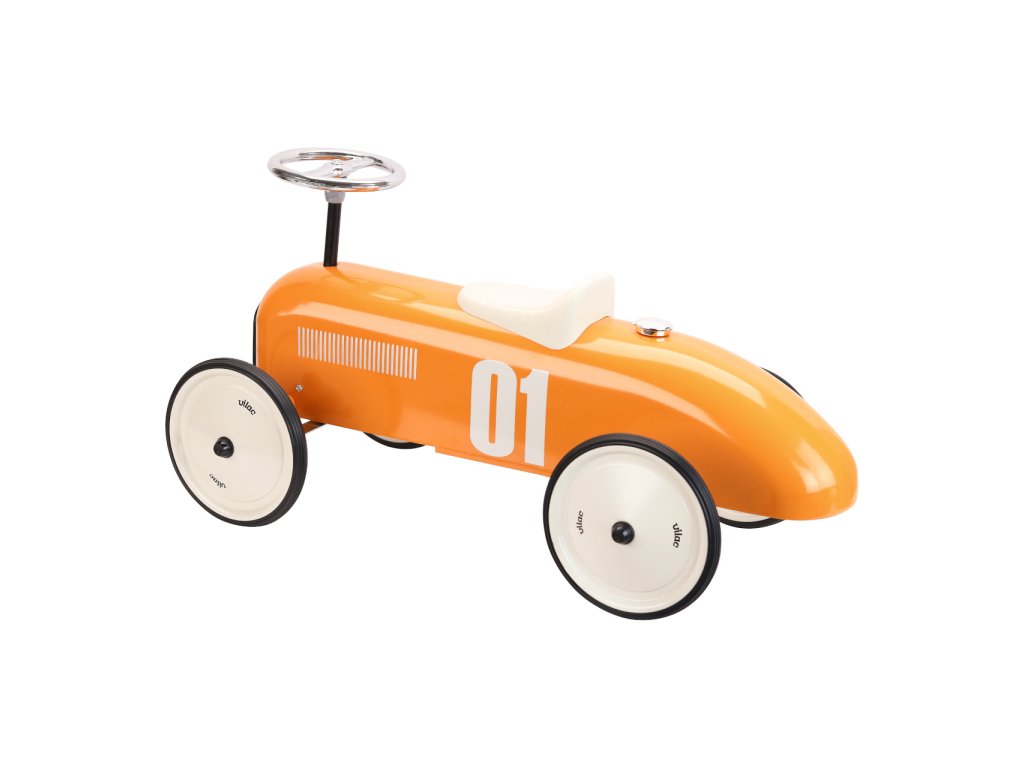 Odrážedlo Vintage ve stylu závodního auta je plně kovové a má oranžovou metalickou barvu. Volant ovládá zatáčení předních kol. Bílé sedadlo je vyrobeno z plastu. Kola odrážedla jsou pogumovaná a zaručují tak tichý chod i na pevném povrchu. Hlavní vlastnosti: stabilní kovové odrážedlo s pogumovanými kolystylový originální designenosnost 20 kg