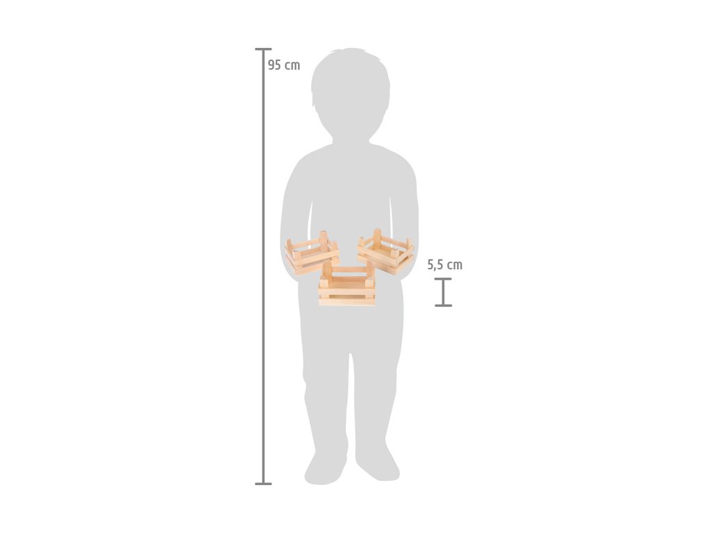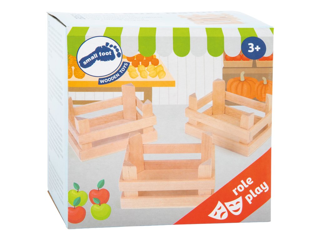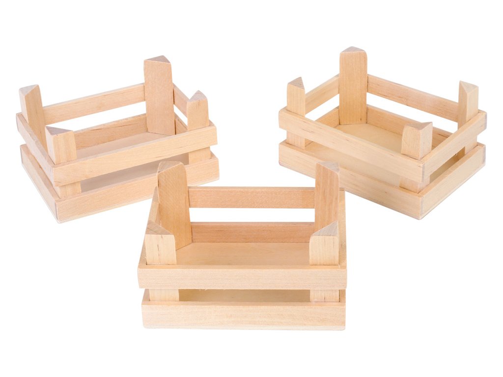 Pevné a odolné dřevěné bedničky jsou všestranně využitelné. Lze jimi doplnit některý z široké nabídky stánků ke hrám na prodavače, stejně tak ale mohou posloužit k třídění a udržování pořádku, ať už v dětském pokoji, nebo na zahradě. Díky přírodní úpravě je můžete natřít a nalakovat dle své fantazie a potřeb. Hlavní vlastnosti: sada 3 ks bedničekpevné a odolné provedenímožnost vlastní úpravy