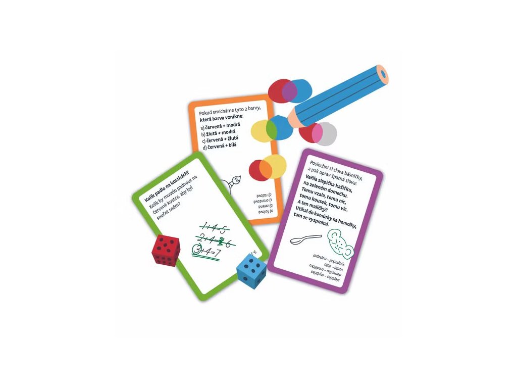 Škola je pro pětileté šikuly ještě stále trochu opředená tajemstvím, ovšem už se do ní začínají těšit a jsou zvědaví, co se v ní všechno naučí. Než s tím začnou, mohou se zábavnými kvízy procvičovat to, co už o světě vědí. Pokud už vaši potomci umí číst, nebo mají staršího sečtělého sourozence, vystačí si s kartičkami sami. Budete-li ale znalosti procvičovat společně, získáte skvělý přehled o tom, jak chytrého máte doma parťáka. Balení obsahuje: 60 kvízových karet1 pravidla Hlavní vlastnosti: zábavný způsob trávení volného časuprocvičí paměť, postřeh i trpělivostpoužitelné pro menší i větší kolektiv (školní třída)vhodné i na cesty Dokumentace: návod ke hře Chytré kvízy – Předškolák (CZ,SK)