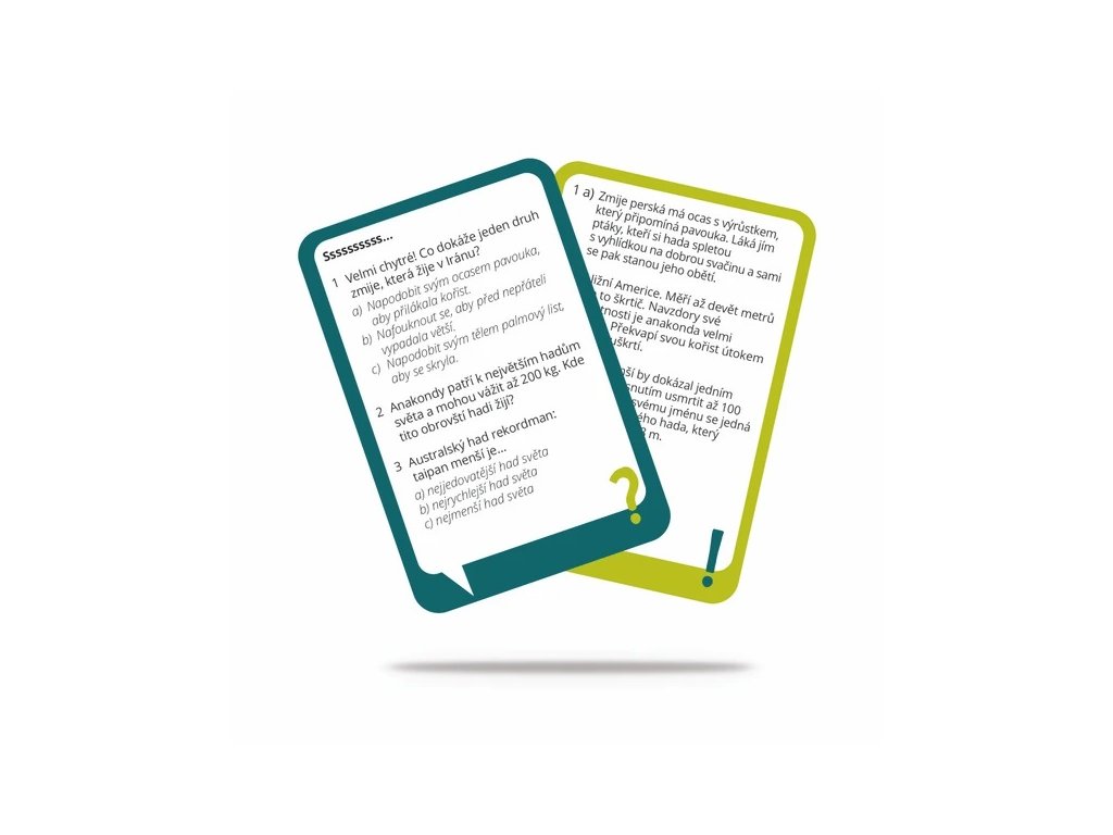 Víte, jakou "superschopnost" mají krávy nebo kolik váží panda při narození? Otestujte své znalosti těmito kapesními kvízy. Až 159 otázek z podivuhodné přírody! Každá z 53 karet obsahuje 3 tematické otázky zaměřené na různé oblasti úchvatného světa přírody plného nejrůznějších rekordů a kuriozit (odpovědi naleznete na druhé straně karty). Úžas zaručen! Balení obsahuje: 53 oboustranných kvízových karet Hlavní vlastnosti: zábavný a edukativní způsob trávení volného časuprocvičí paměť i trpělivostpoužitelné pro menší i větší kolektivvhodné na cesty