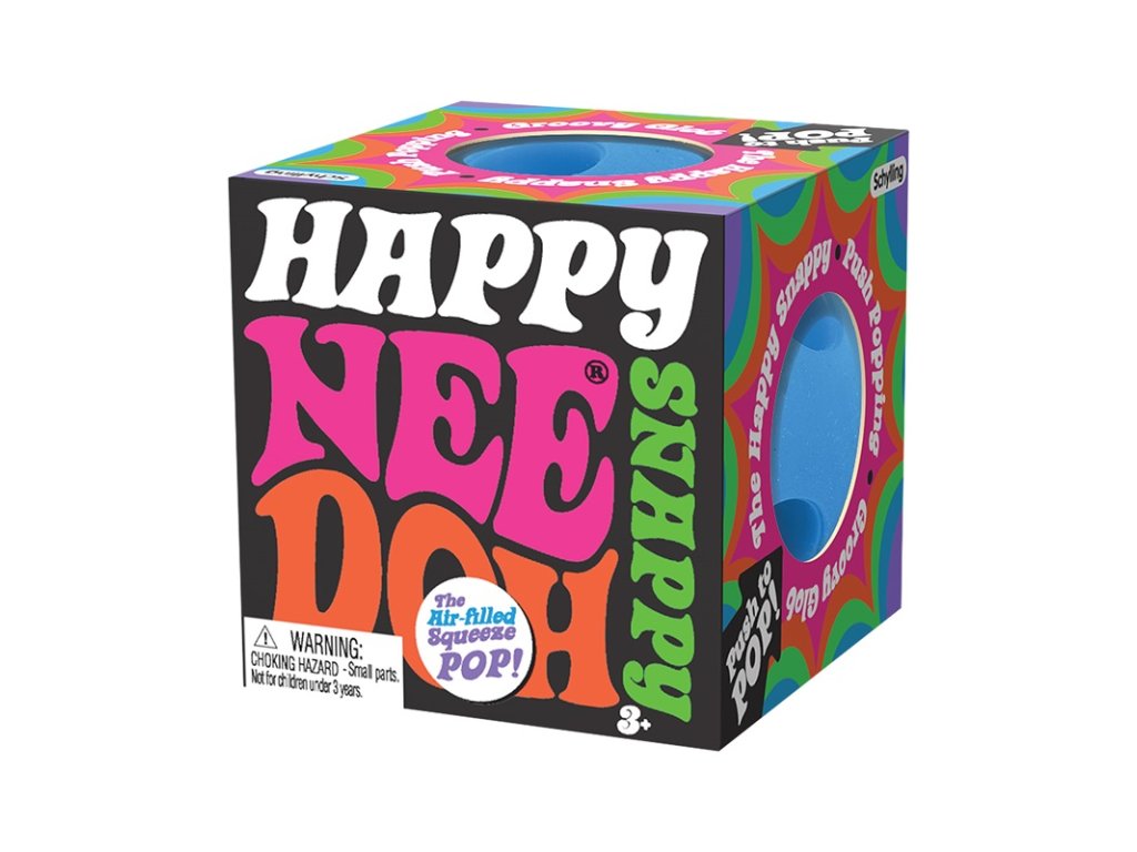 Cena je uvedená za 1 ks. Happy Snappy je hračka která děti zabaví na celé hodiny a pomůže dětem taky proti stresu. Tyto kuličky nejsou plněny jako běžné kuličky NeeDoh, plní se vzduchem. Jemně zmáčkněte vzduchem naplněnou kouli a sledujte, jak vyčnívají konkávní otvory, které vydávají zvuk „praskání“ bublin. Happy Snap NeeDoh je skvělá hračka , zvláště vhodná pro děti s ADD, ADHD, OCD, autismem a úzkostí. Pomáhá dětem soustředit se a věnovat pozornost dané hračce. Koule je vyrobená z netoxických materiálů, dostupná ve čtyřech barvách. Vnější materiál produktů NeeDoh je termoplastická guma, vnitřní náplň je polyvinylalkohol, oba materiály jsou netoxické. Náplní je PVA, který se používá také jako potah ve farmaceutických přípravcích a doplňcích stravy. Hlavní vlastnosti: antistresový míček i hračkaNeeDoh naplněné vzduchempodporuje soustředěnost a pozornostideální na cesty